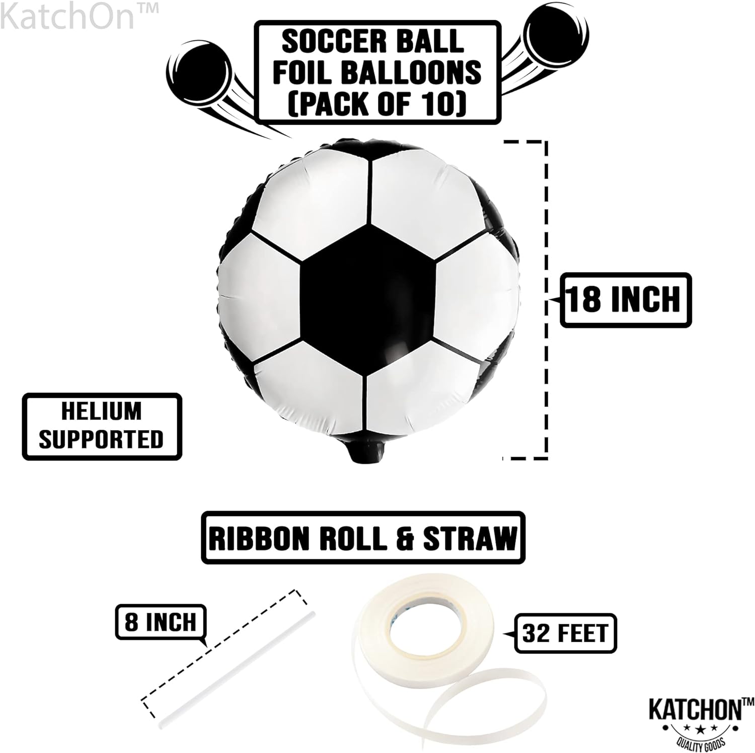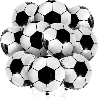 HELIUM SUPPORTED | BLACK AND WHITE SOCCER MYLAR BALLOON : These globos de pelotas de futbol for soccer ball party decorations will be a definite hit for your son's football birthday party decorations with the pack of 10, jumbo sport ball balloon and perfect size 18 inch that will hold attention. This soccer ball mylar balloons have self sealing valve and it is helium supported. This soccer balloon arch is perfect for soccer party decor, soccer decorations for parade float.