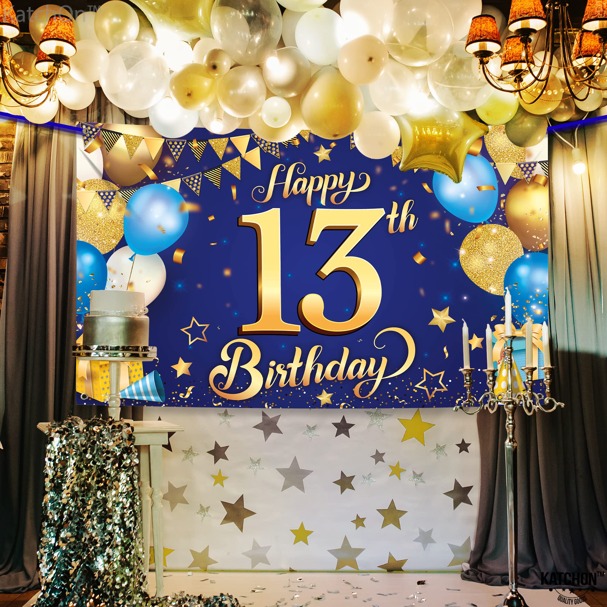 - Personalized Birthday Backdrop for Blue and gold 13th birthday party decorations