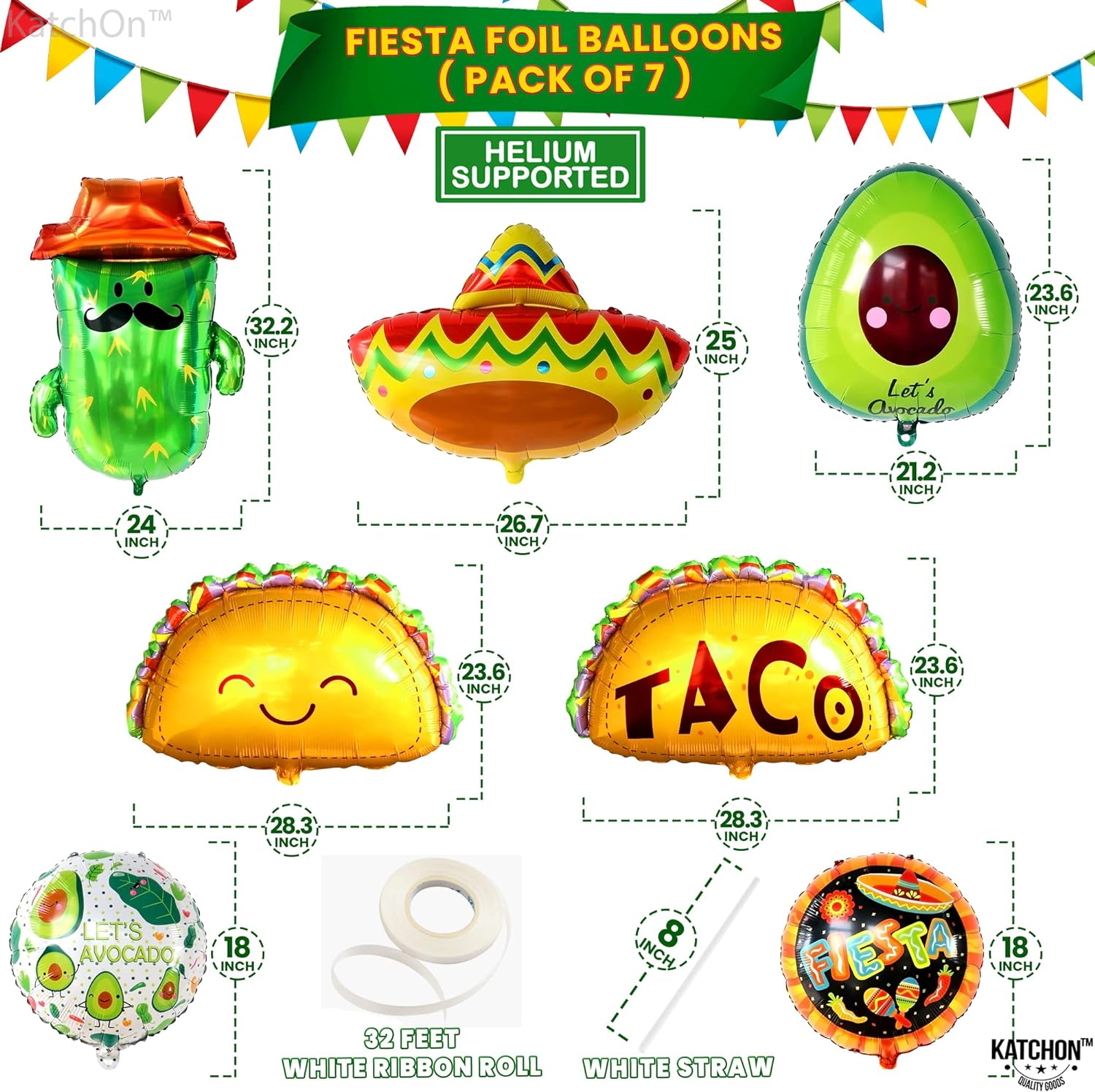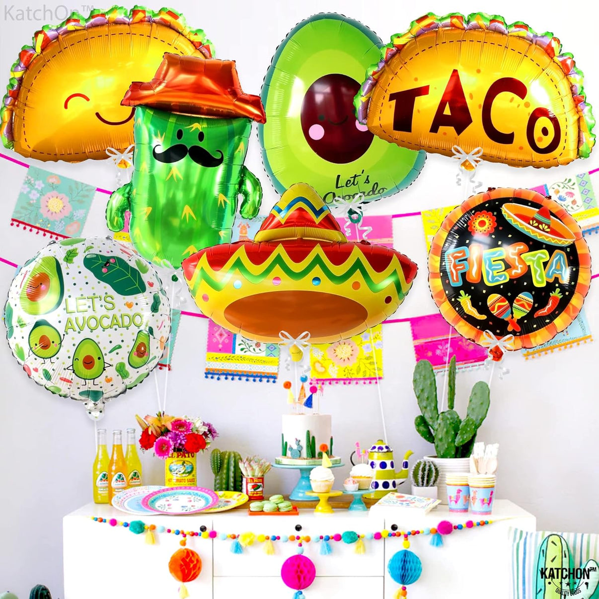 KatchOn, 7Pcs Big Mexican Fiesta Balloons | Fiesta Party Decorations | Mexican Balloons for Mexican Themed Party Decorations | Cinco De Mayo Balloons, Fiesta Party Balloons, Taco Balloons for Party