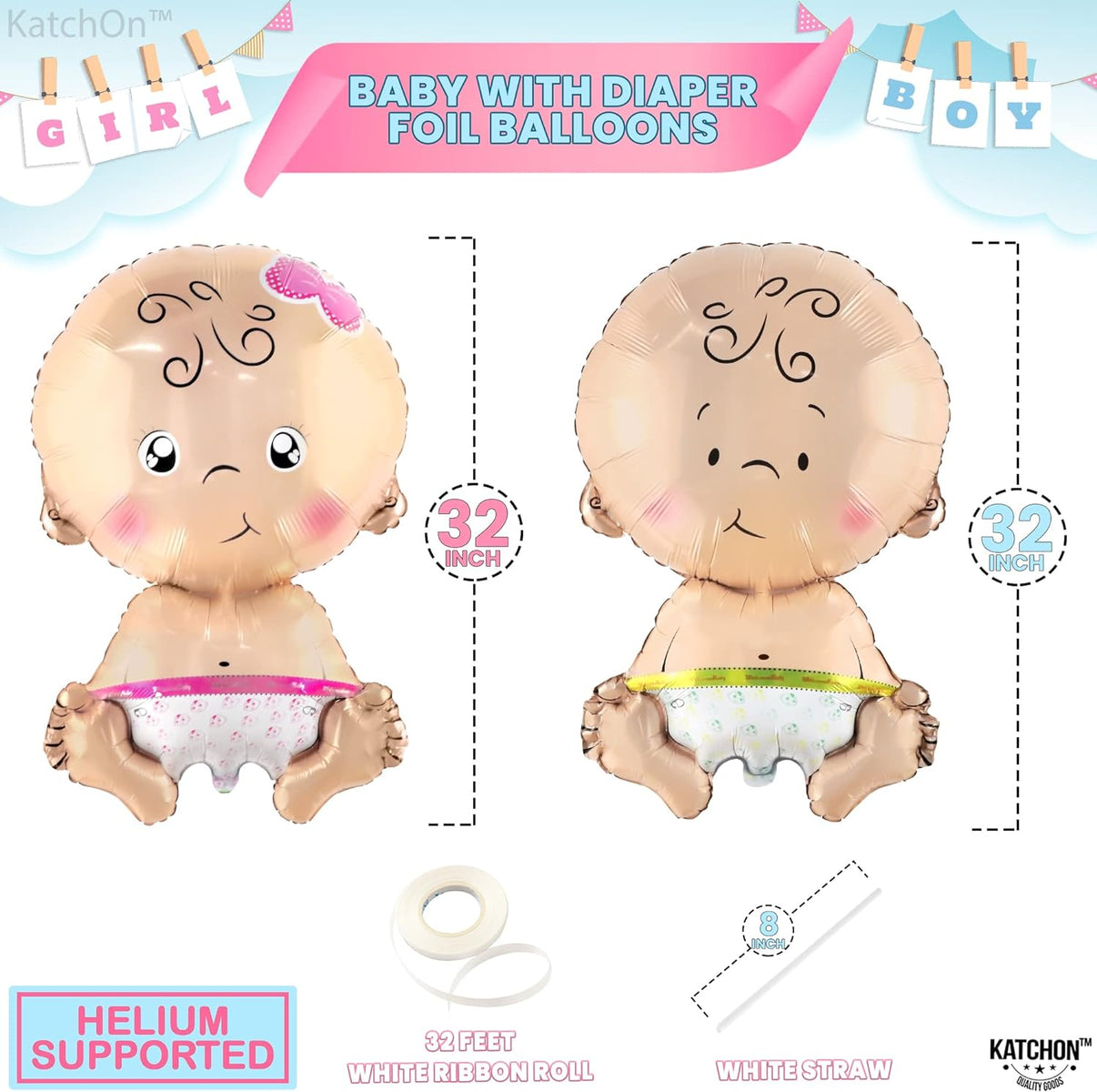 BIG - 32 INCH BABY BALLOON : Welcome the arrival of your little one with our adorable Xtra large baby girl and boy balloon. This pack includes both baby boy and girl shaped balloons that is 32 inch, perfect for revealing gender of your baby for gender reveal decorations balloons. Whether you choose to use baby gender reveal balloons for gender reveal party or simply to announce news to family and friends. Perfect gender reveal backdrop boy or girl for twins baby shower decorations for boy.