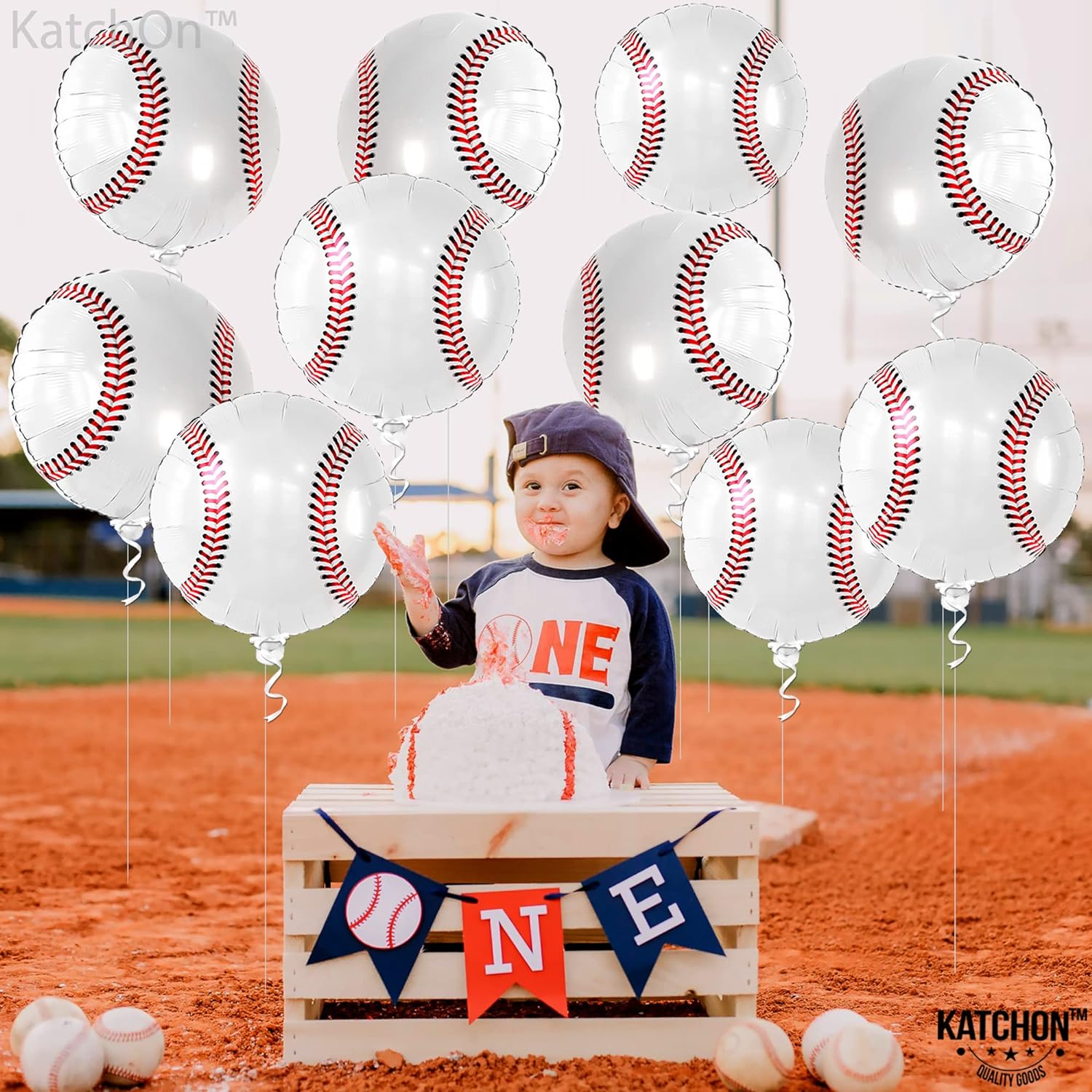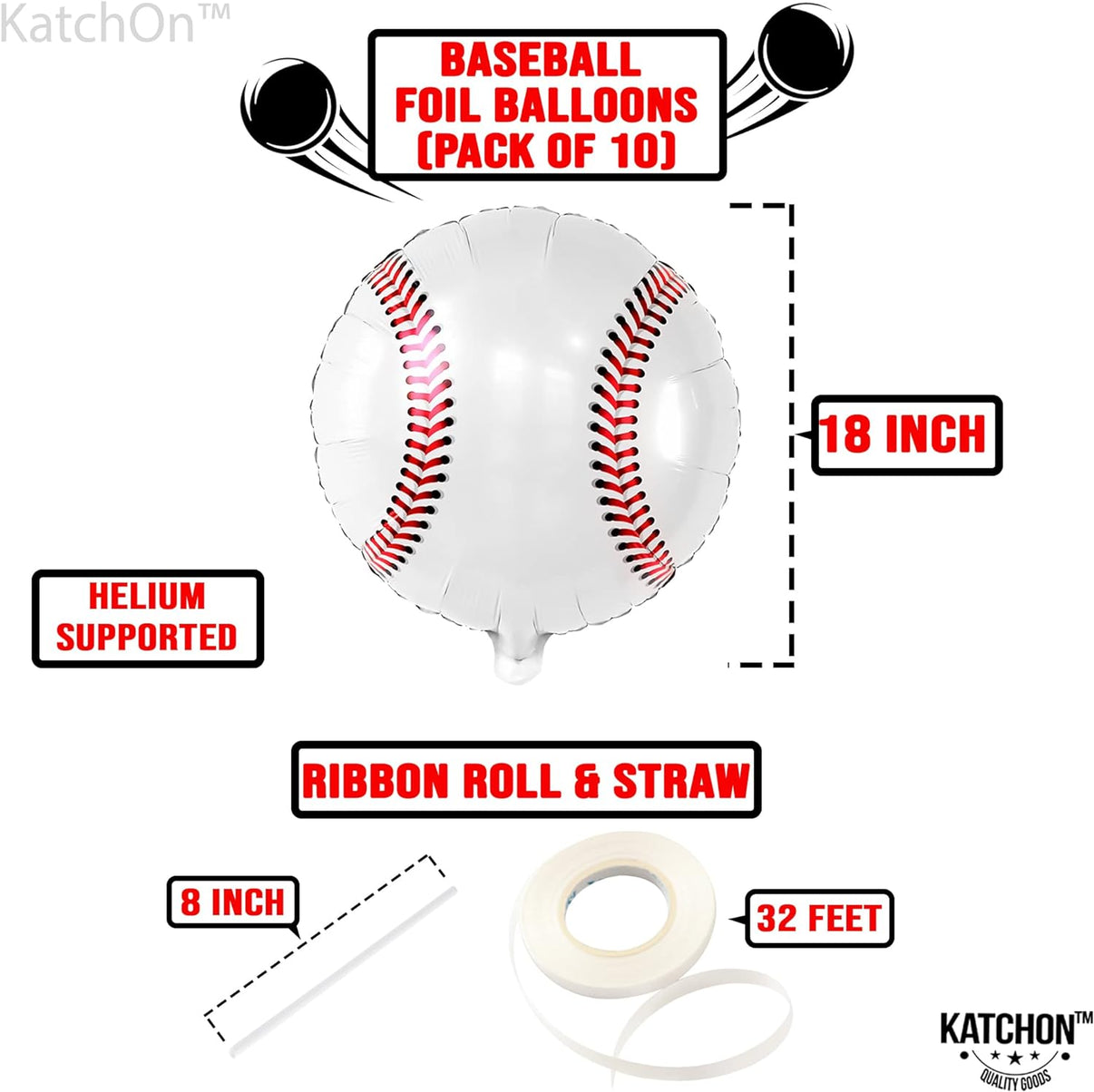 PERFECT SIZE - 18 INCH | HELIUM SUPPORTED : These softball mylar balloons for baseball party balloons decorations will be a definite hit for your son's baseball birthday decorations with the pack of 10, baseball helium balloons. Perfect Size 18 inch baseball balloons for homecoming decorations for high school that will hold attention, Sports Party Balloons have self sealing valve and baseball balloons helium is supported for baseball float decorations. Baseball party decor is ideal for all ages.