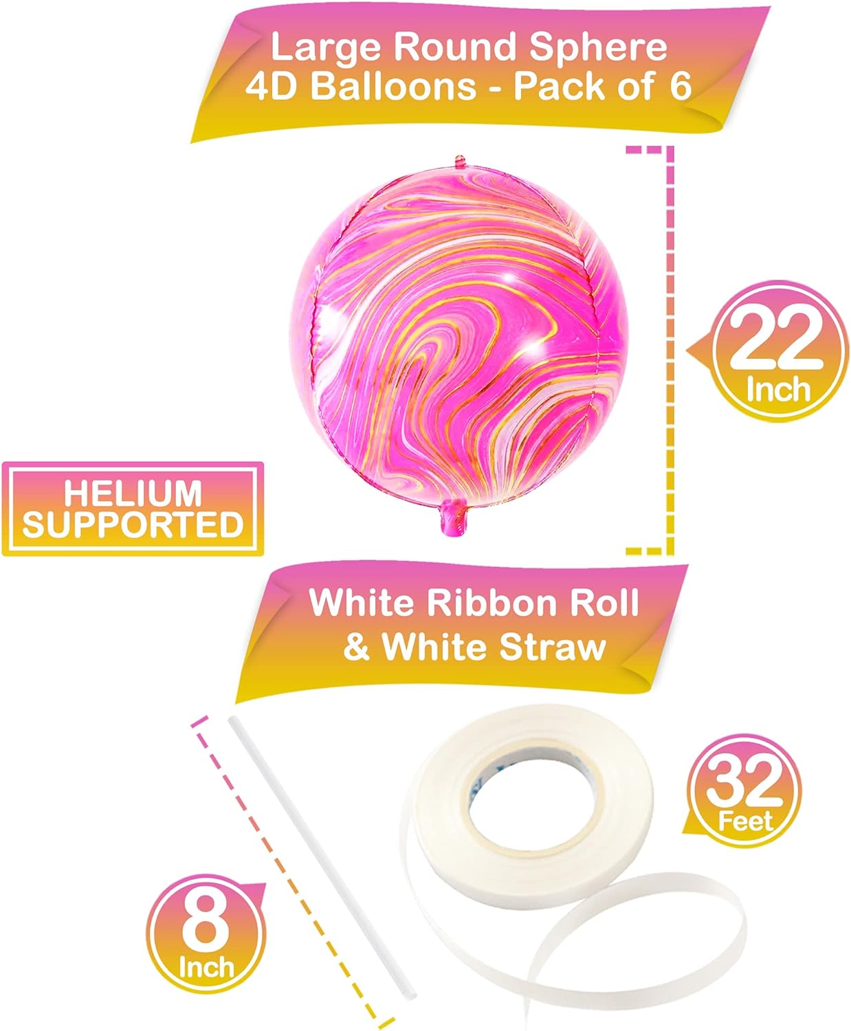 ELEVATE YOUR EXPERIENCE : Have no worries in purchasing this pink mylar balloons for your Unicorn Themed Birthday Decoration or pink and orange decorations. We are very confident with tie dye balloons quality & durability for this agate balloons. If you’re not satisfied with this round marble pink foil balloons, we are here to help you.