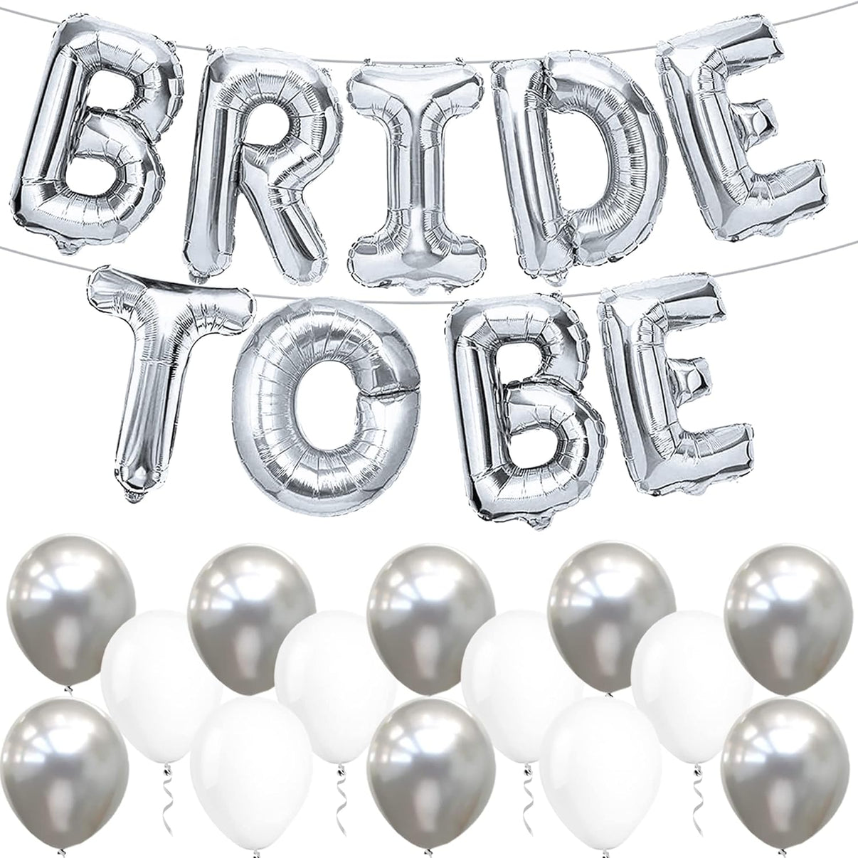 BRIDE BALLOONS, LATEX BALLOONS FOR BRIDAL SHOWER: This silver bride to be pack comes with letter balloons that spell the word “BRIDE TO BE ” is 16 INCH, White latex balloons 12 Inch- Pack of 9 and Silver latex balloons 12 Inch - Pack of 9 and made from high quality grade Mylar foil. These bride to be signs for bridal shower decorations are sturdy enough to stand long-hour display and can stay inflated for days. Use the straw to inflate and deflate the Mylar bride to be letter balloon.