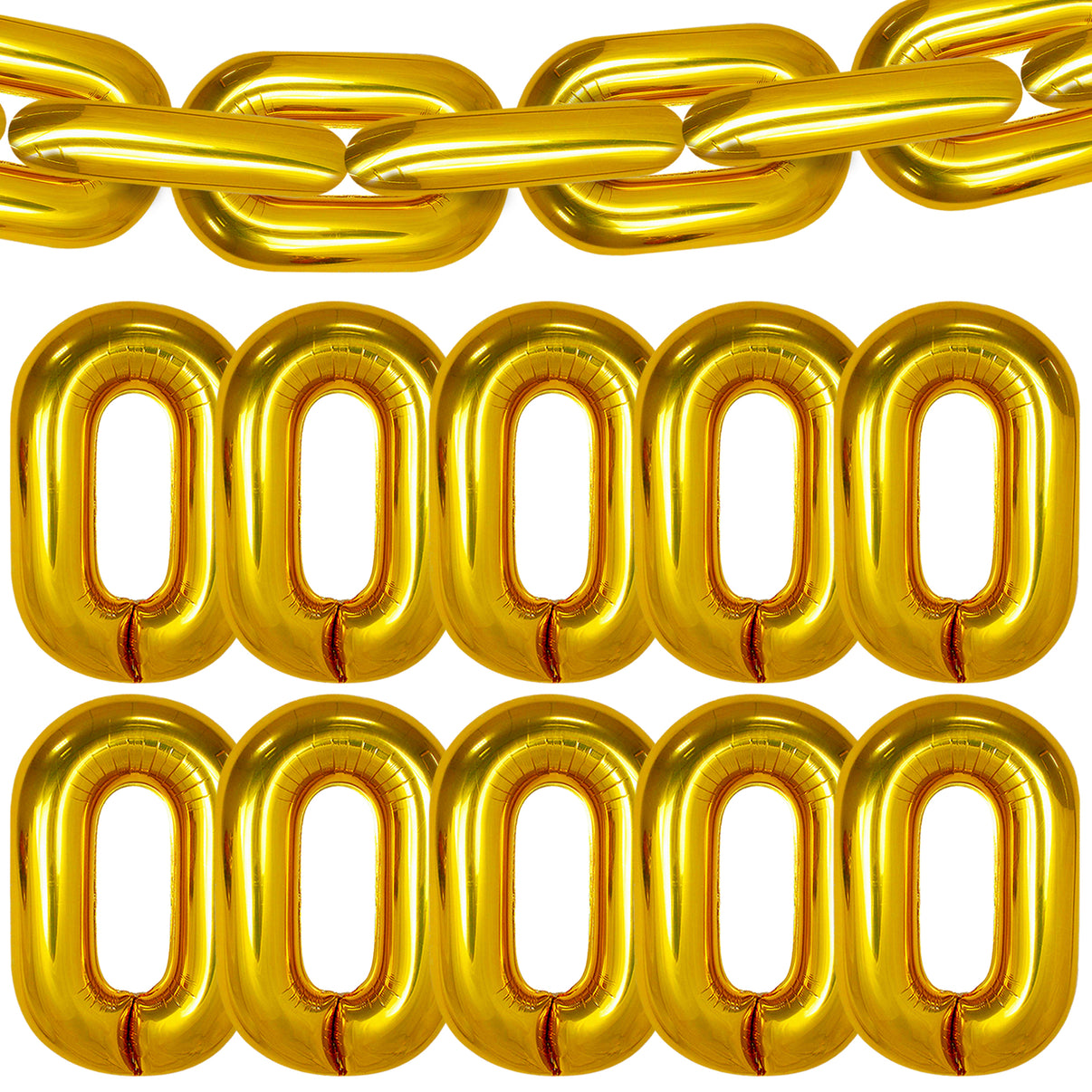 BIG SIZE - 16 INCH | SHINY METALLIC GOLD CHAIN BALLOON : Are you a hip hop fan? Looking for a unique party add-on that will not just stand out but leave the guest with a impression? Well, we have got you covered with these foil 16 inch chain balloons, gold chain balloons for 90s party decorations, buchona party decorations. With these gold balloon chain, make a metallic gold chain balloons garland of hip hop birthday party decorations. Use this chain balloons gold for 70s party decorations.