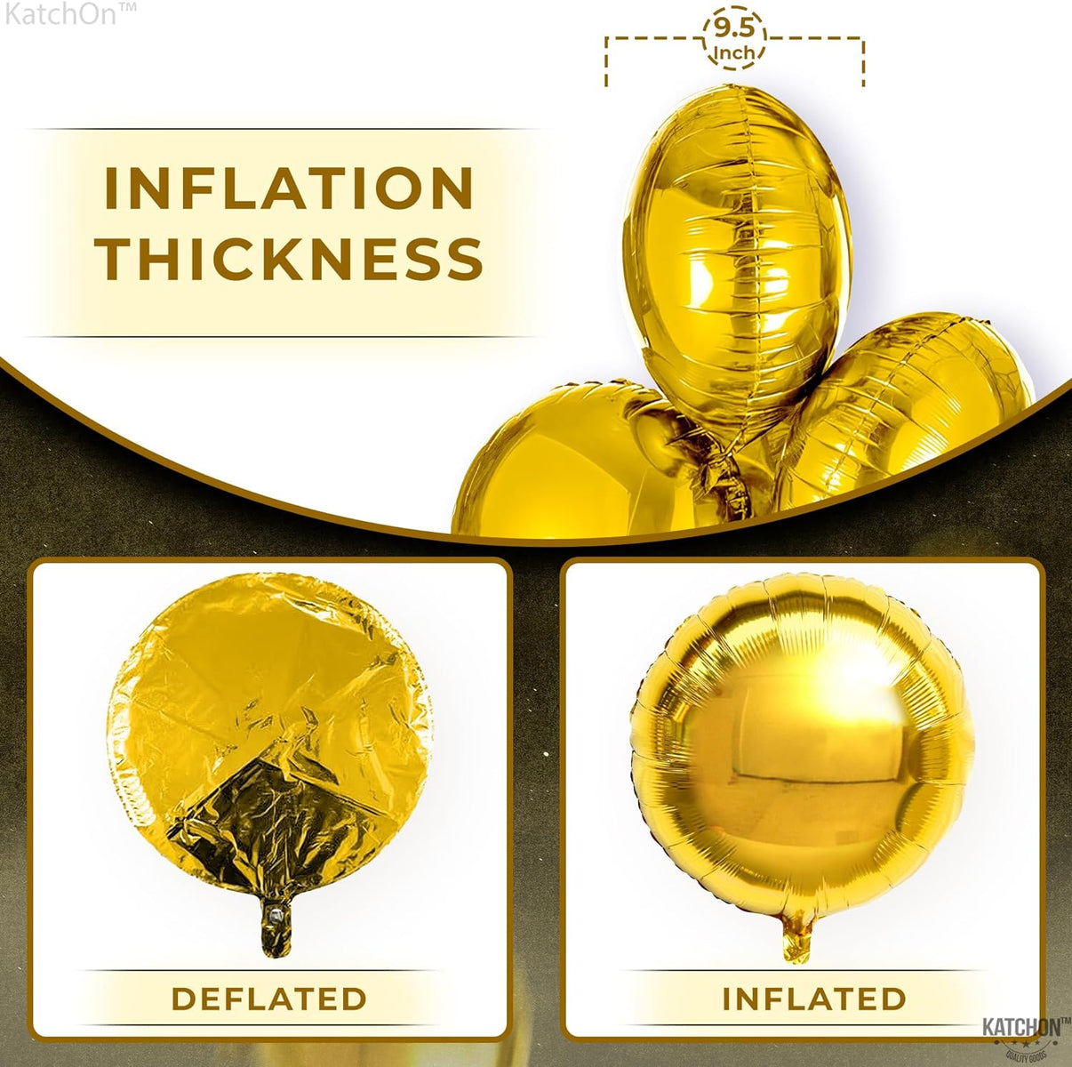 HUGE PACK OF 6 | LOVELY ROUND SHAPED GOLD BALLOONS : Looking to make an elegant arch with gold decorations to welcome your guests These gold foil balloons are the perfect addition to your gold party decorations. You will get a large gold round balloon - Pack of 6. Whether you're throwing a gold-themed baby shower or just want to add a pop of color to your girls birthday, these balloons are sure to make a statement, ideal balloon for Graduation party decorations 2024, and many more.