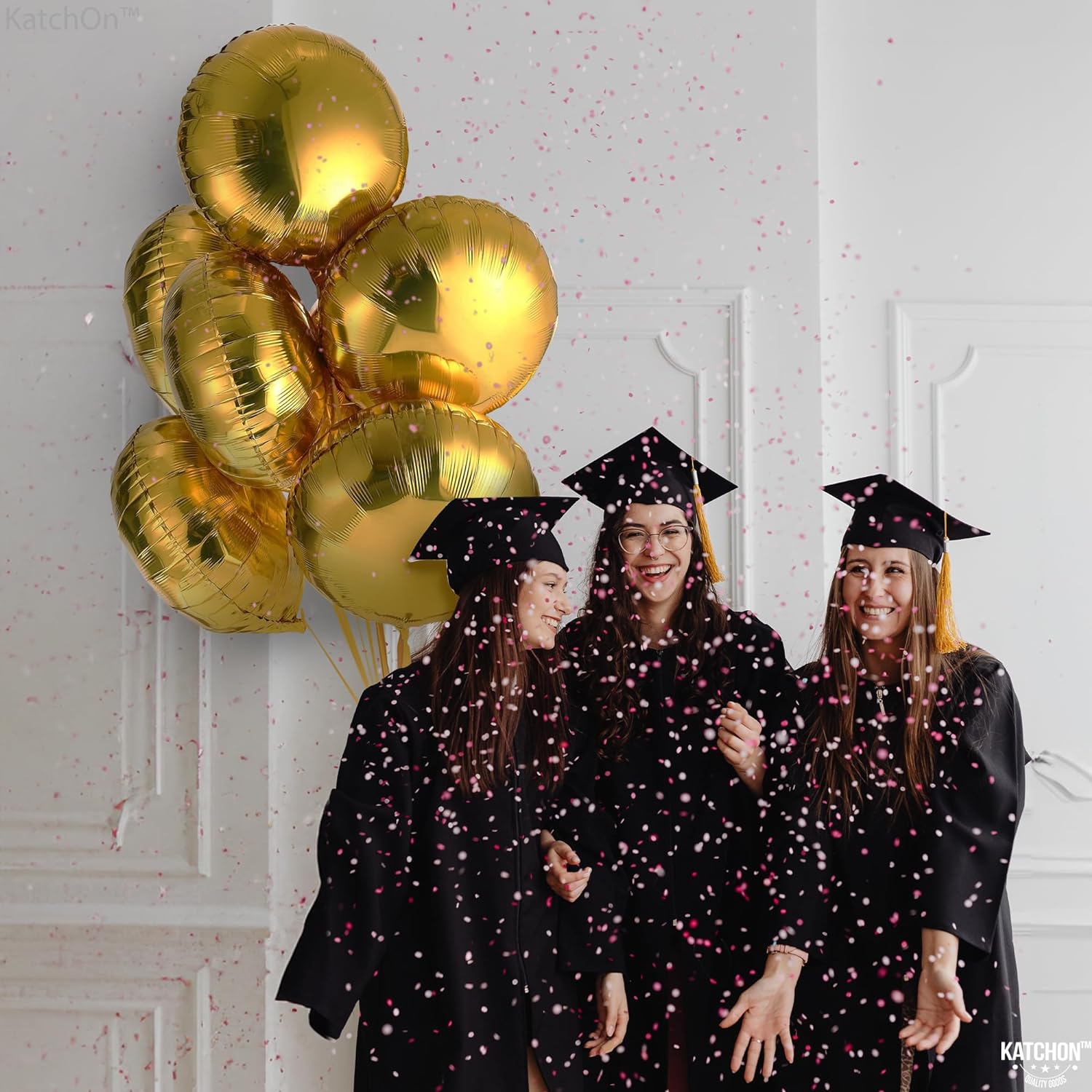 PERFECT FOR MANY OCCASIONS : Add magnificence to your Graduation decoration 2024 with our golden metallic round balloons. This gold foil balloon is perfect for creating a warm and inviting atmosphere at your special event. Use them as centerpieces, hang them from the ceiling, or create a gold birthday balloon arch for a stunning backdrop. The possibilities are endless with these gold balloon party decoration.
