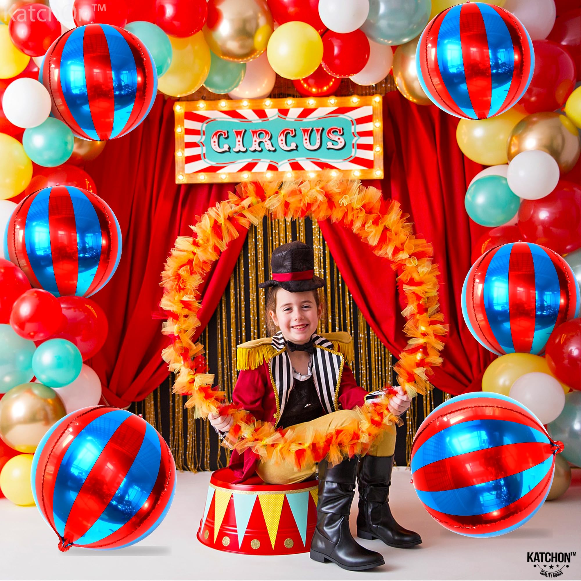 Perfect for a circus party decorations for girl party, Giant circus balloons for party, carnival backdrop, carnival-themed party, circus theme balloons. Add a circus balloon arch for party and welcome your guests for circus birthday party decorations featuring carnival color balloons, dumbo balloons, and fair decorations.