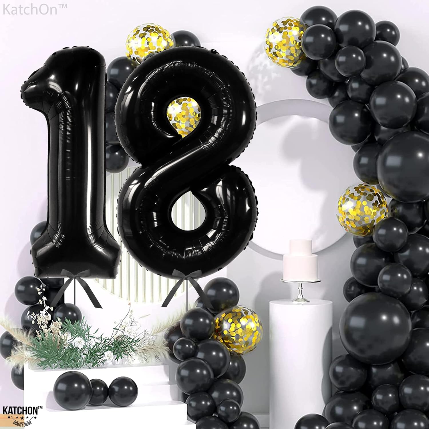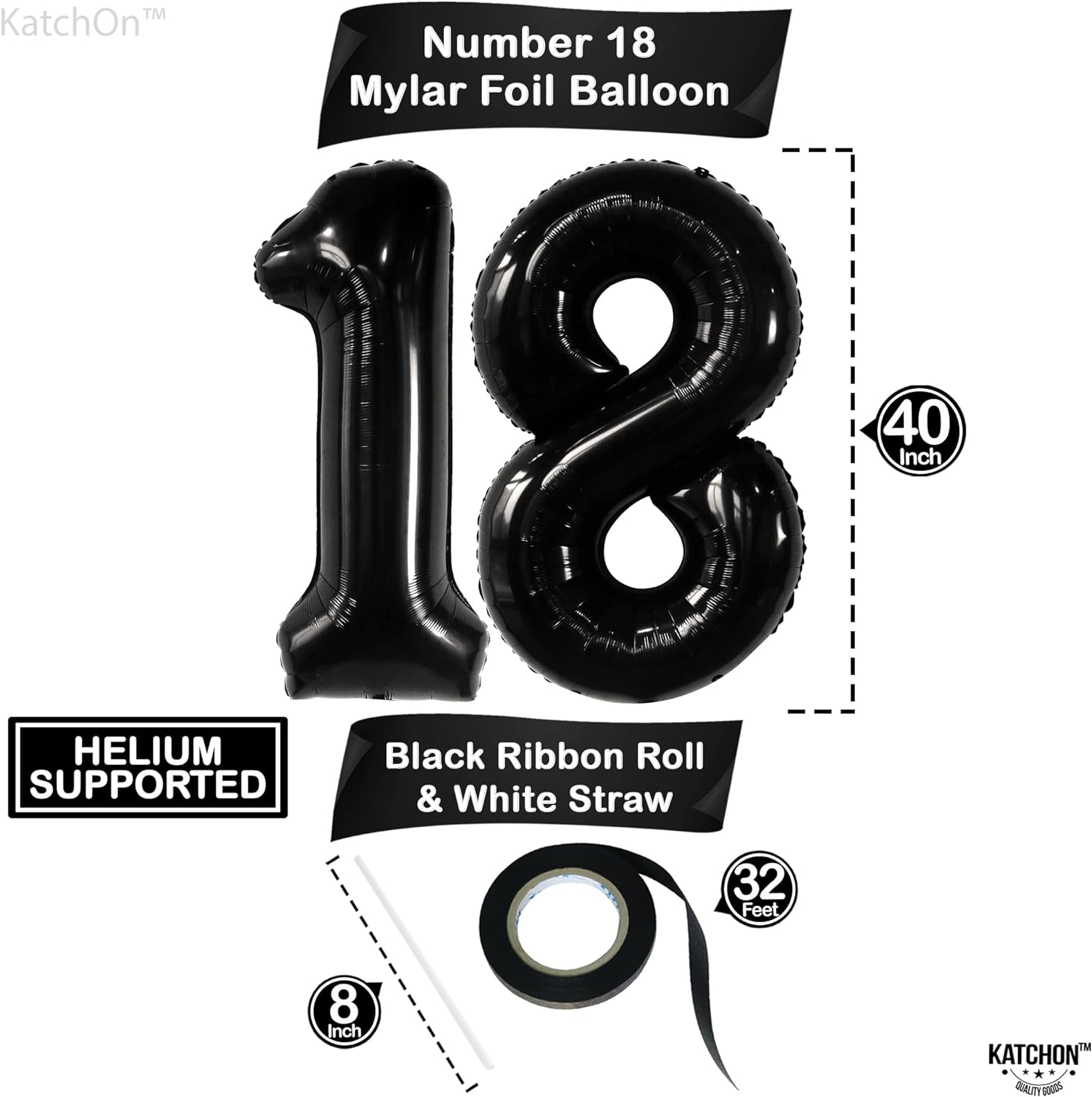 KatchOn, Black 18 Birthday Decorations - Giant, 40 Inch | Happy 18th Birthday Decorations for Boys | 18th Birthday Decorations for Girls | Black 18 Balloon Numbers for 18th Birthday Party Decorations