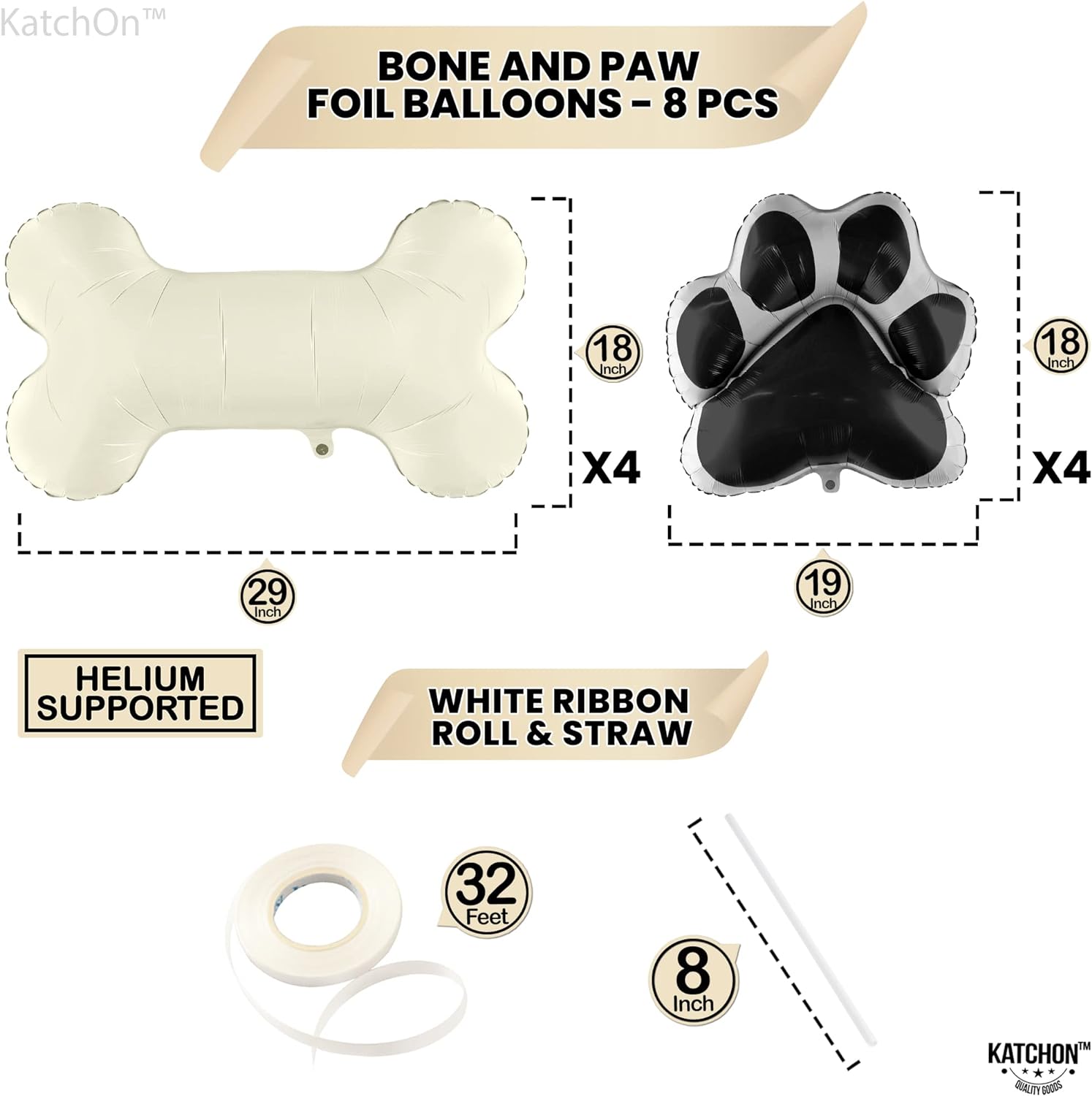 PACK OF 8 | SELF SEALING - 29 INCH | EASY TO INFLATE – Make a big statement at your dog's birthday party with our Dog paw and bone balloon set. Designed with Dog Bone Balloon - 4 pieces, 29 Inch and Dog Paw Balloons - 4 pieces, 19 Inch. This black paw print balloons lets you celebrate special moments with children, friends, and family. The dog print balloons are self sealing, holding air for long time. Make your dog's birthday party one to remember with our Dog Balloons for Birthday Party.