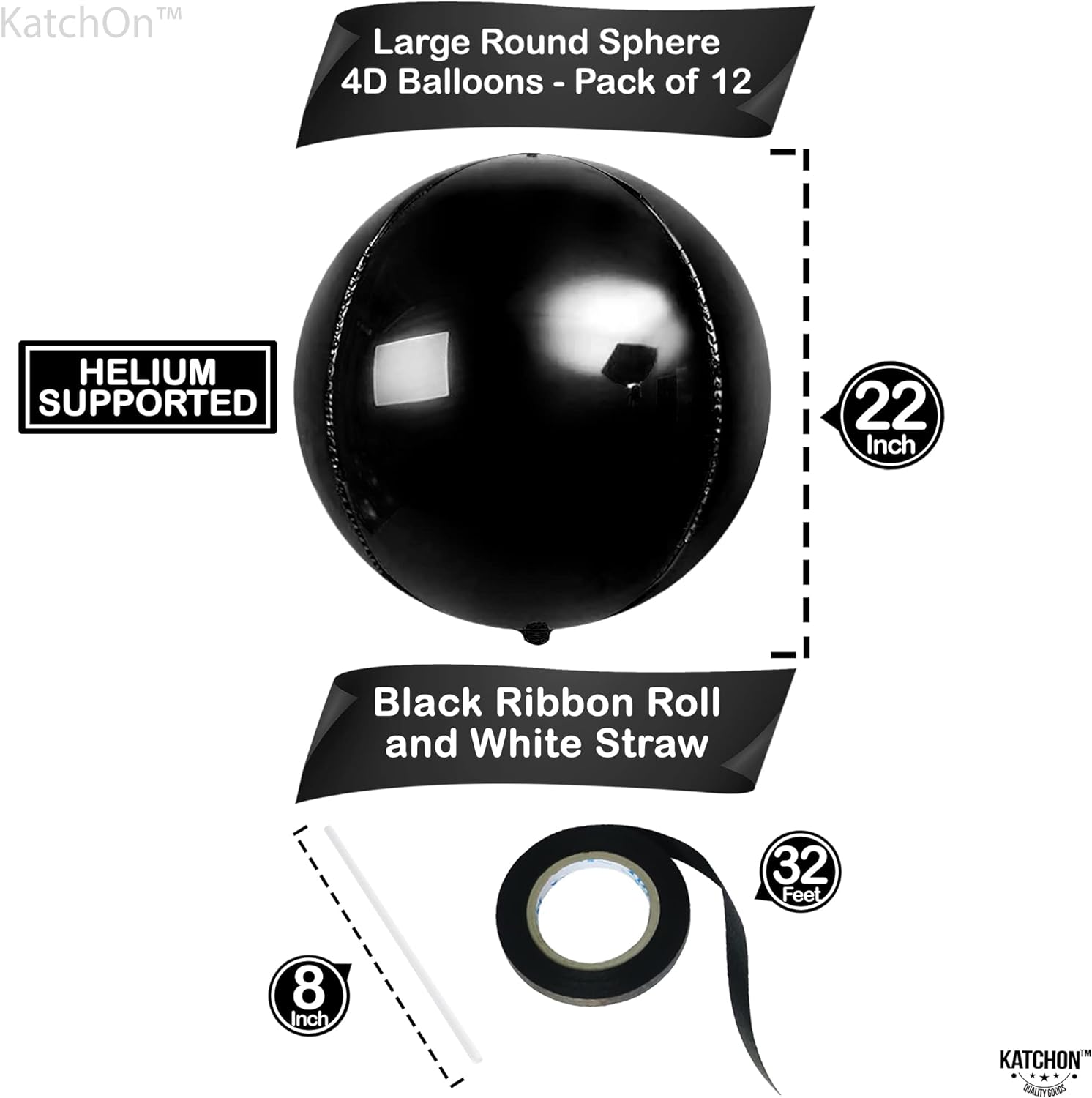 KatchOn, Black Mylar Balloons - 22 Inch, Pack of 12 | Black 4D Balloons, Black Foil Balloons for Black Birthday Decorations | Metallic Black Balloons, Foil Black Balloons for Black Party Decorations