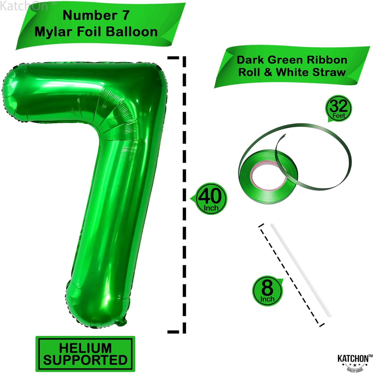 KatchOn, Dark Green 7 Balloon Number - 40 Inch | 7 Birthday Balloon for Jungle Party Decorations | Number 7 Balloons for Birthdays | Dark Green Number 7 Balloon for 7th Birthday Decorations for Boys