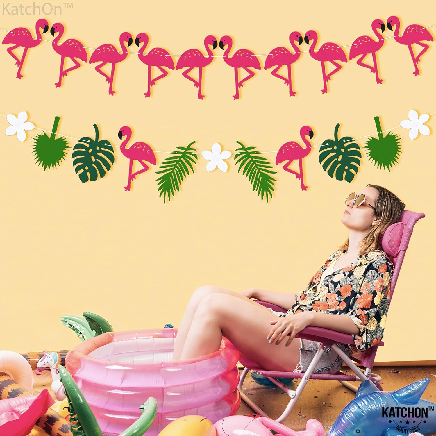 KatchOn, Felt Flamingo Garland for Flamingo Decorations - Large 10 Feet, 2 String, No DIY | Flamingo Banner for Flamingo Party Decorations | Flamingo Birthday Decorations, Tropical Party Decorations