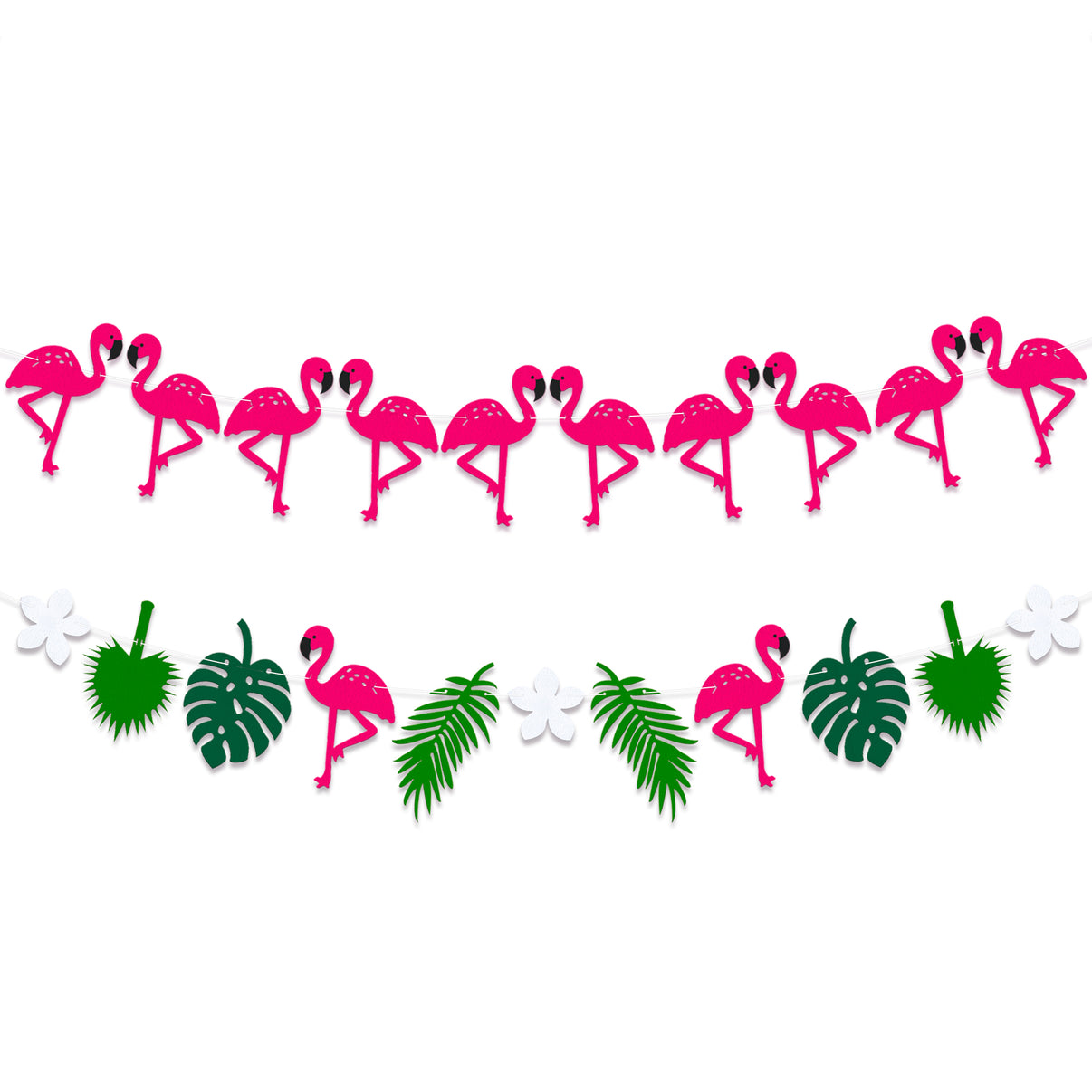 LARGE - 10 FEET | FELT FLAMINGO GARLAND WITH LEAVES : Want to have classy party add-on for the up coming summer? This Let's flamingos decor willl be a great add-for your tropical beach decorations. Our flamingo garland felt in our pink flamingo garland decorations are large 10 feet ideal to freshen up the summer heat. Makes an amazingly eye-catching and attention-magnet parties embellishment to dance like a flamingo banner garland of course with the palm beach party decorations.
