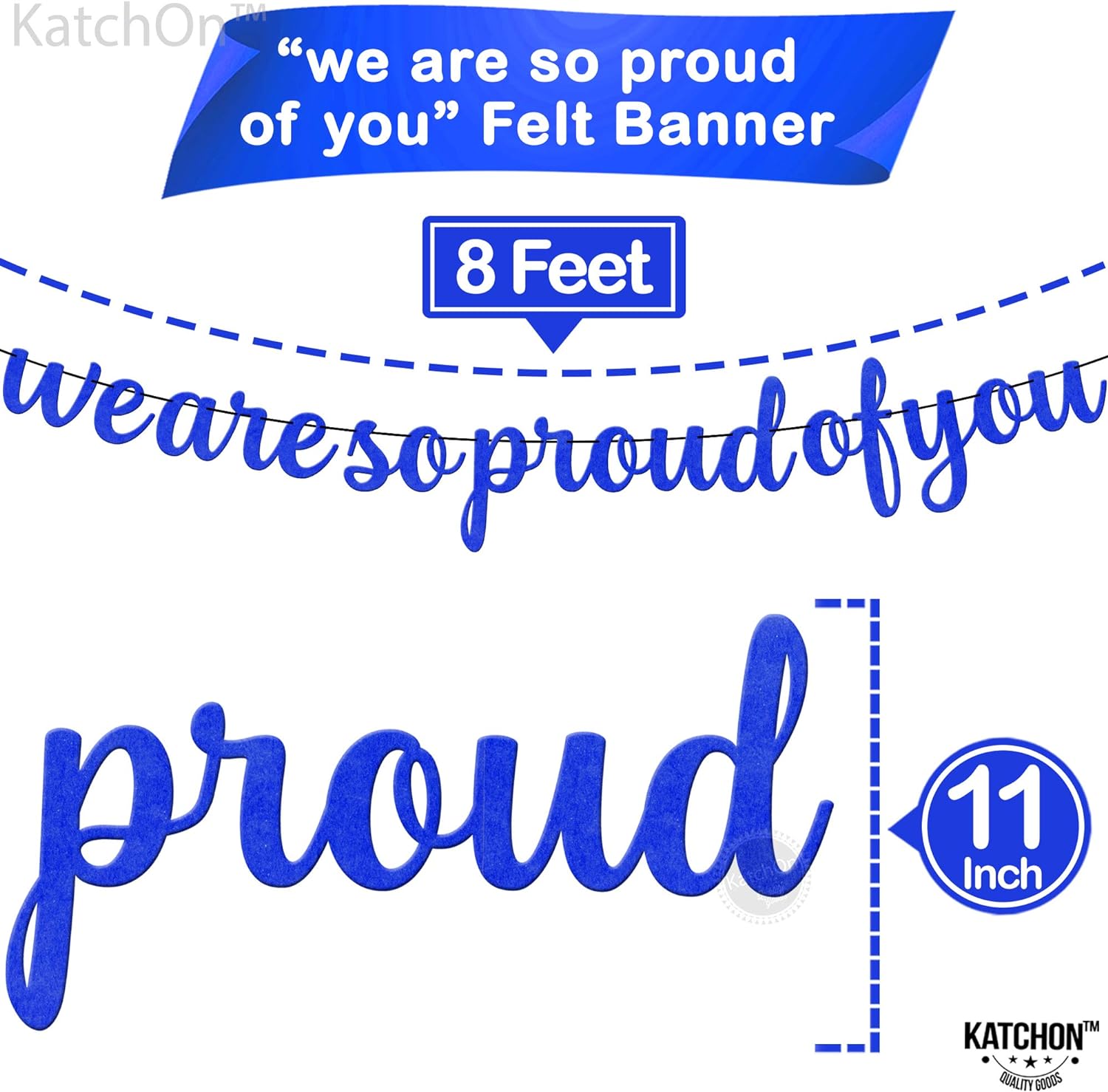 KatchOn, Felt We Are So Proud of You Banner - 8 Feet, No DIY | Blue White Congratulations Banner, Blue Graduation Decorations Class of 2024 | Congratulations Decor, Graduation Party Decorations 2024