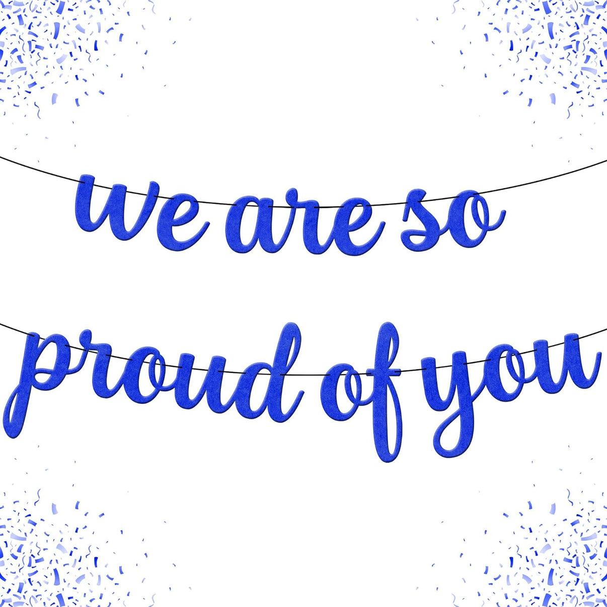 LARGE SIZE | SHINY BLUE FELT INSPIRATIONAL BANNER - We value your time so we sent this we are so proud banner navy and white pre-assembled and ready to use just 2024 graduation party supplies. We are so Proud of you graduation 2024 decorations banner has got all that you need with perfect size of 8 feet this congrats grad banner will surely wow everyone, add hype in your highly-anticipated party of the year with 2024 graduation decor . Perfect we are so proud of you graduation banner.