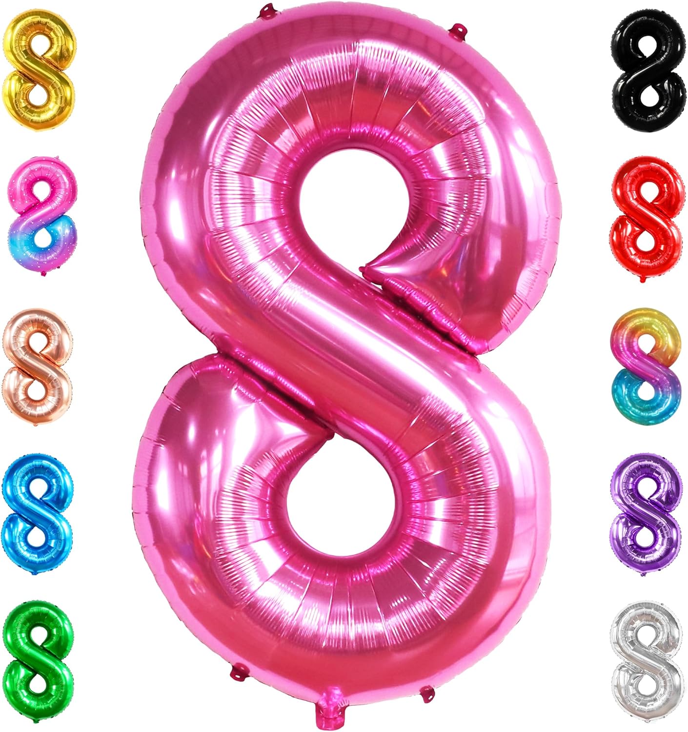 LARGE SIZE - 40 INCH | BEAUTIFUL METALLIC HOT PINK 8 BALLOON - This Big Pink 8th Birthday Balloons 40 inch is the party complement you shouldn’t miss. Add a great impact to your decoration with this hot pink 8 balloon Balloon comes with 40-inch Huge Number 8 Pink Foil Balloon, 1 Pink Ribbon and 1 Straw. Perfect Hot pink balloon 8 year old birthday, Use this Giant hot pink birthday decorations for 8 year old girl birthday party, 8th Anniversary and much more occasions