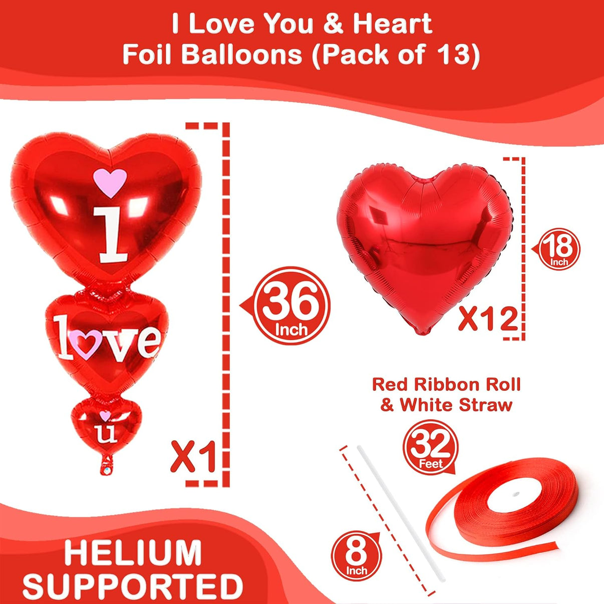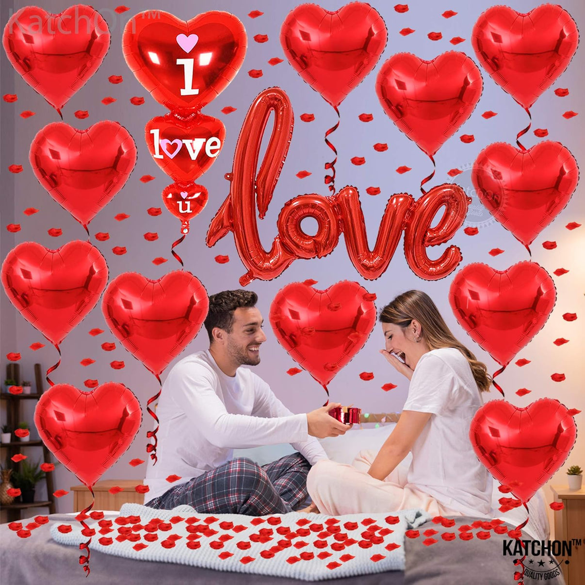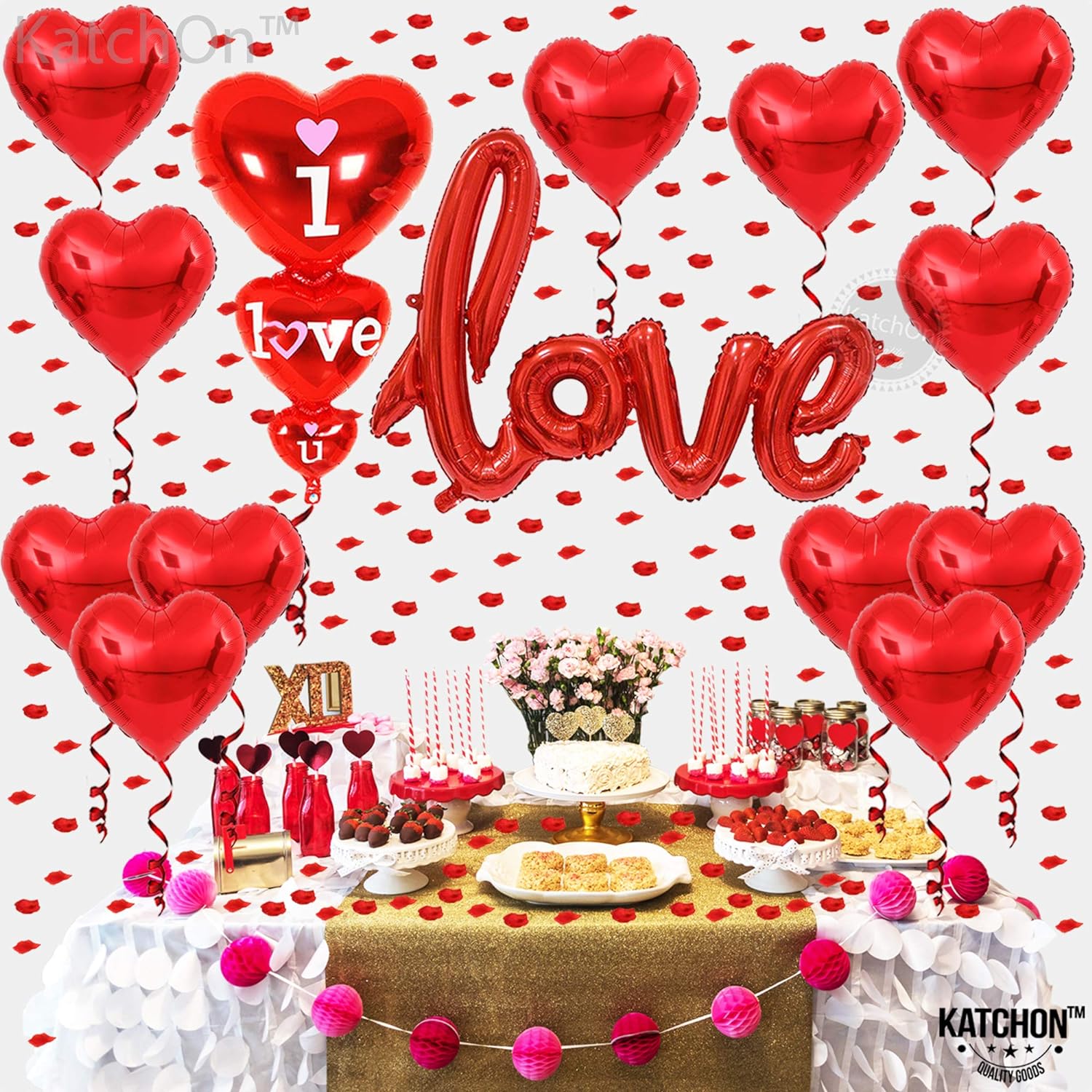 KatchOn, Giant I Love You Balloons Set 36 Inch - Red Rose Petals, Pack of 1000 | Script Love Balloon, Red Heart Balloons for Valentines Day Decor | Valentines Day Balloons for Valentines Decorations