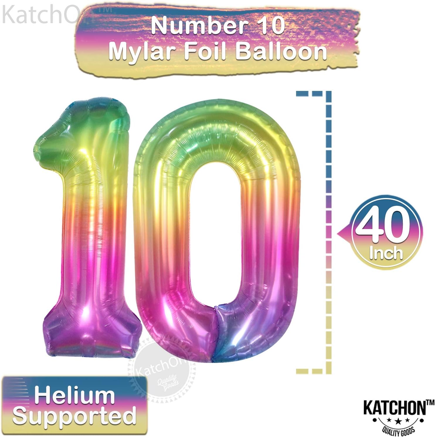 KatchOn, Giant Jelly Number 10 Balloon - 40 Inch | Rainbow 10 Balloon Number | 10th Birthday Decorations for Girl | 10 Balloon Number For Girls | Tie Dye Balloons for 10 year old Birthday Decorations