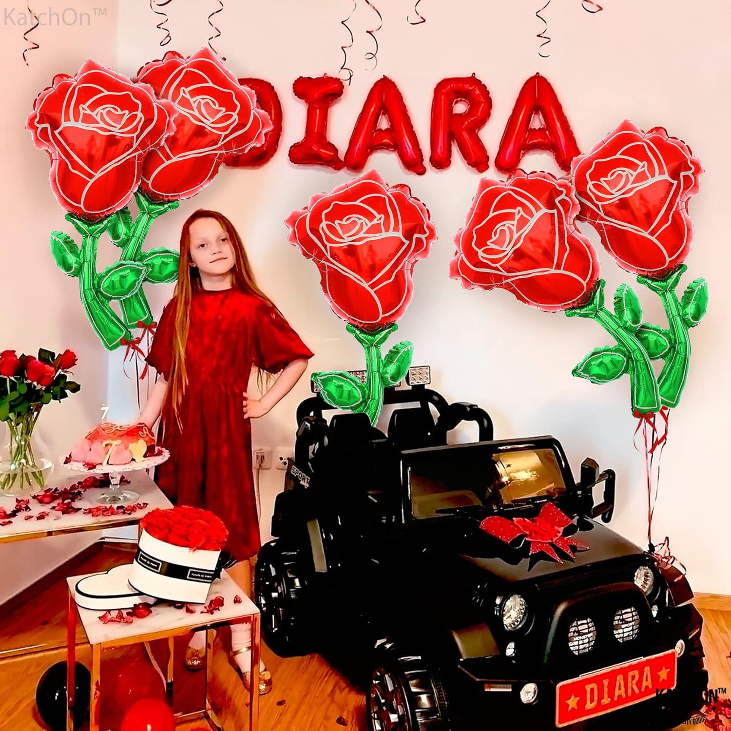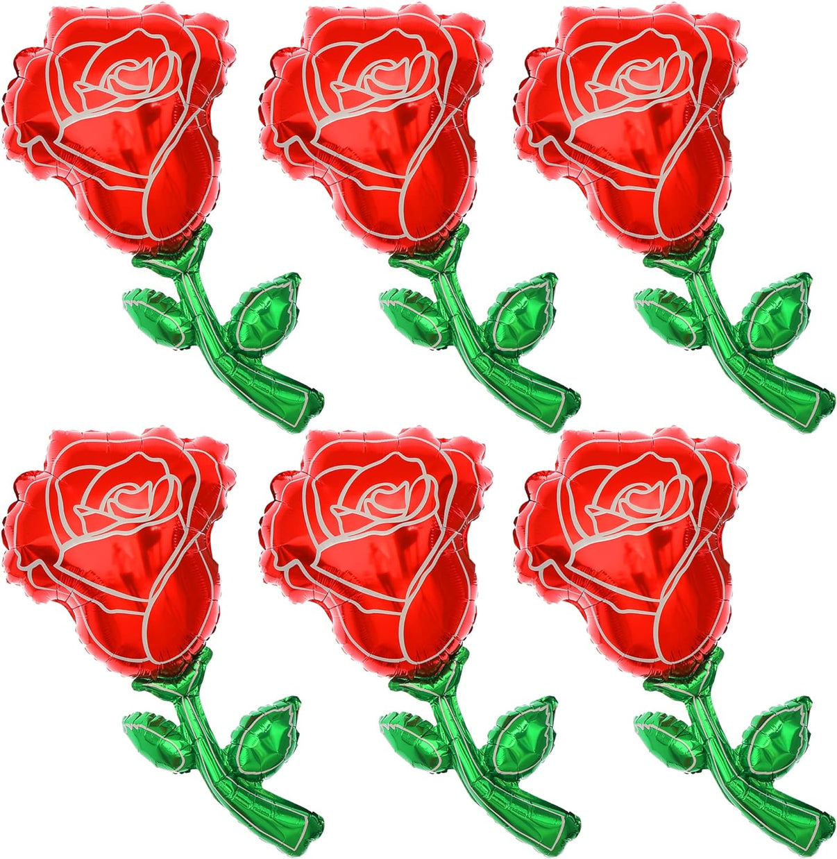 Katchon, Giant Red Rose Balloons - 37 Inch, Pack of 6 | Rose Foil Balloons, Flower Shaped Balloons | Rose Shaped Balloons for Valentines Day Party Decorations | Roses Balloons, Valentines Day Balloons