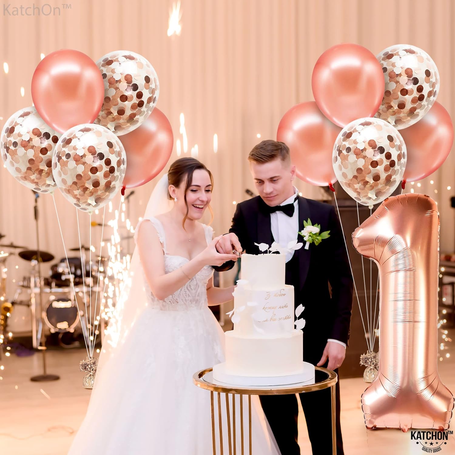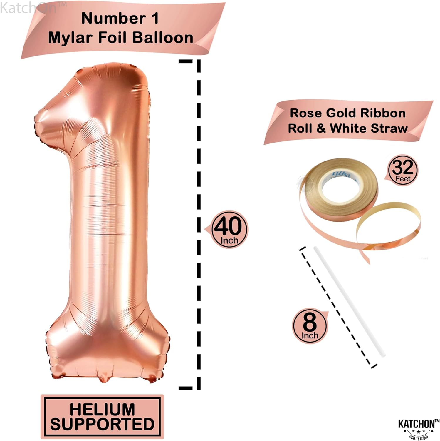 KatchOn, Giant Rose Gold 1 Balloon Set - 40 Inch | 1 Balloons for 1st Birthday | First Birthday Decorations for Girl | Rose Gold Number 1 Balloons for 1st Birthday Girl Decoration | Number One Balloon