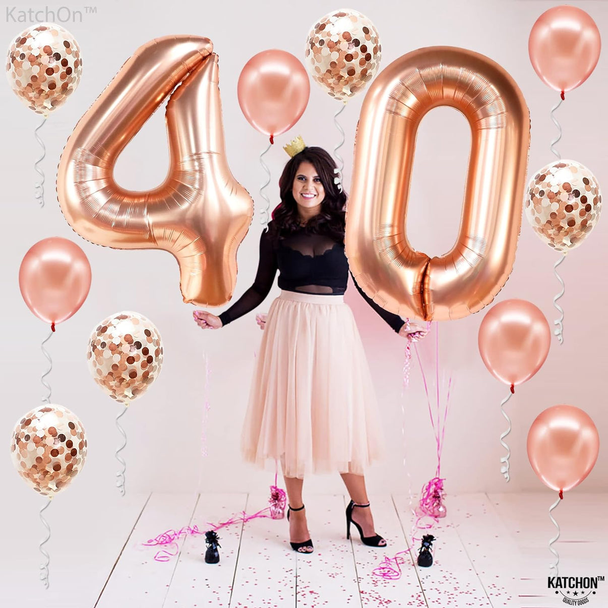KatchOn, Giant Rose Gold 40 Balloon Numbers - 40 Inch | Rose Gold 40th Birthday Balloons for Women | 40th Birthday Decorations Women | 40 Birthday Balloons for Women | 40 and Fabulous Decorations