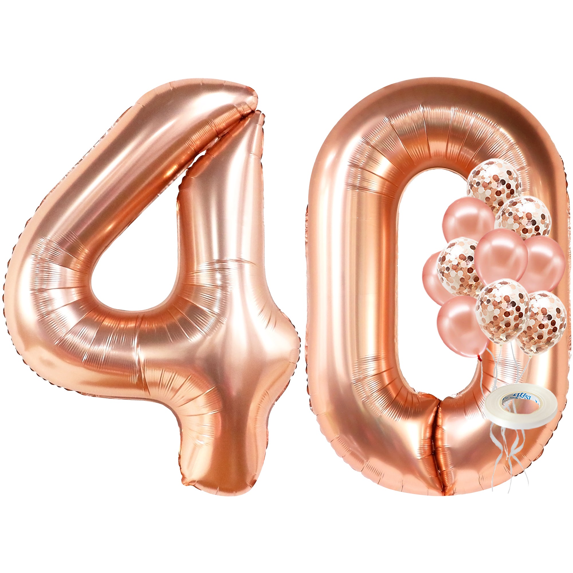 GIANT SIZE : 40 INCH | ELEGANT ROSE GOLD PARTY : Looking for a pocket-friendly Rose Gold Party for rose gold 40th Birthday Decorations for Women in your Life ? This Balloon Numbers Rose that comes with a giant Rose Gold Number 40 Balloons - 40 Inch, Real Rose Gold Latex Balloons - Pack of 5 & Rose Gold Confetti Balloons - Pack of 5 with White Ribbon - 32 feet and White Straw - 8 Inch will complete your 40 rose gold balloons or 40th birthday balloon women party decor.