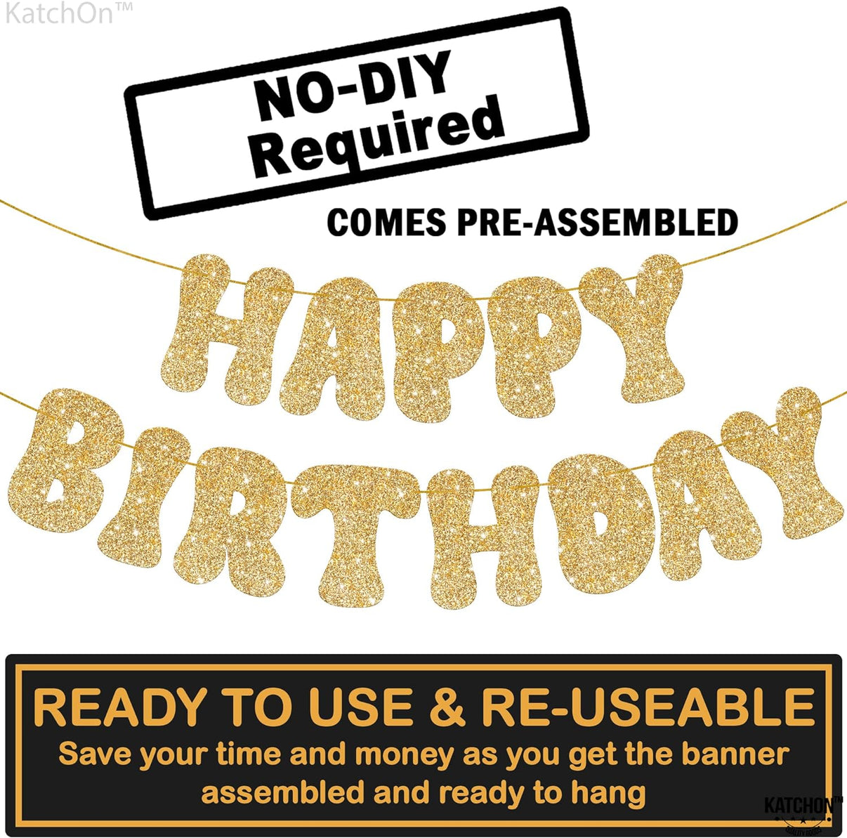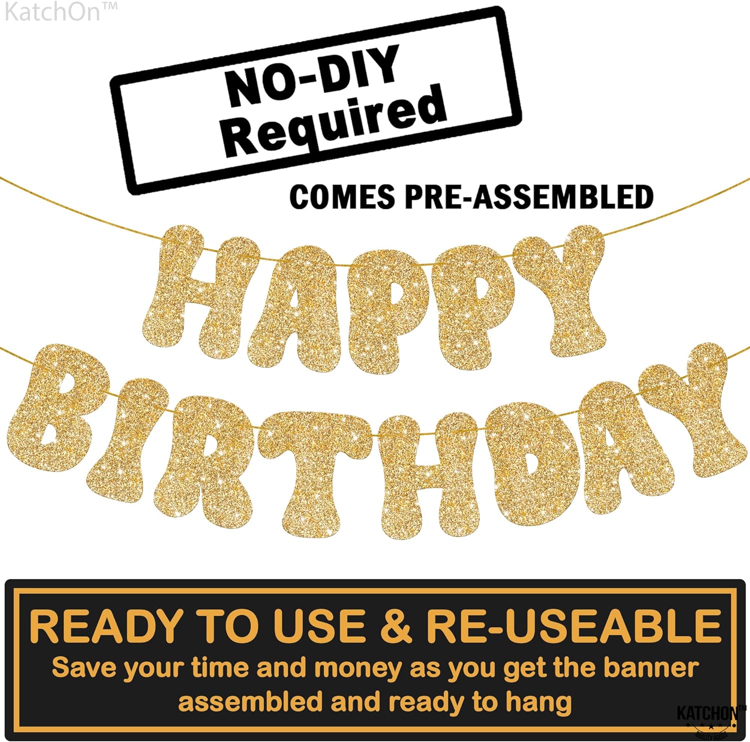 PRE-STRUNG | DID WE MENTION NO DIY ? | READY TO USE - The Gold Happy Birthday Banner prestrung is 10 Feet long, can be decorated with ease as there is NO DIY Required and can be attached and detached easily from your walls and backdrops. The prestrung glitter Gold Happy birthday sign Decorations comes pre assembled. Pre strung Happy Birthday Banner Gold Each card are tightly locked at the ends. Take a look at our birthday door banner as happy birthday banners for men.