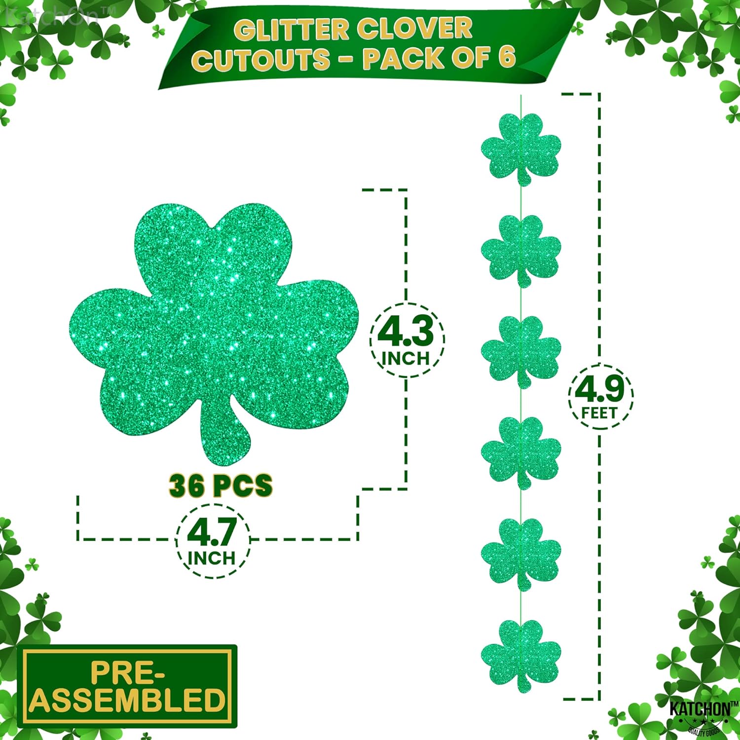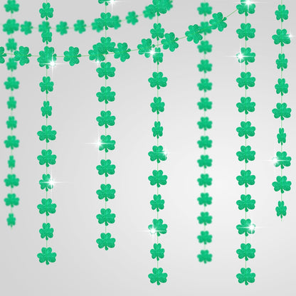 PRE-ASSEMBLED AND READY TO USE : Each shamrock streamer garlands for shamrock decorations strings is approx. 4.9 Feet long. Each clover cutout measures approx. 4.4x4.7 Inch. The package includes total 6 st patricks day hanging decorations that are pre-assembled and each string has 6 large shamrock paper garland. Simply hang these st patrick garland up in your home or store, you will at once feel the luck st. patrick's day bring to you!