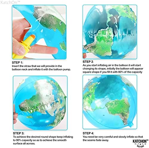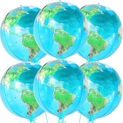 🌎 HIGH QUALITY | TRANSPARENT INFLATABLE GLOBE BALLOONS : Earth balloons for party pack of 6 with each transparent earth balloons 22 inch and the best part is that it is transparent for your let the adventure begin decorations, bon voyage decorations, globe decorations. Farewell or retirement with travel theme party decorations element will give deep impression about Reduce, Reuse and Recycle Globe Decorations. Around the world decorations, earth day decorations is fun and for educating.