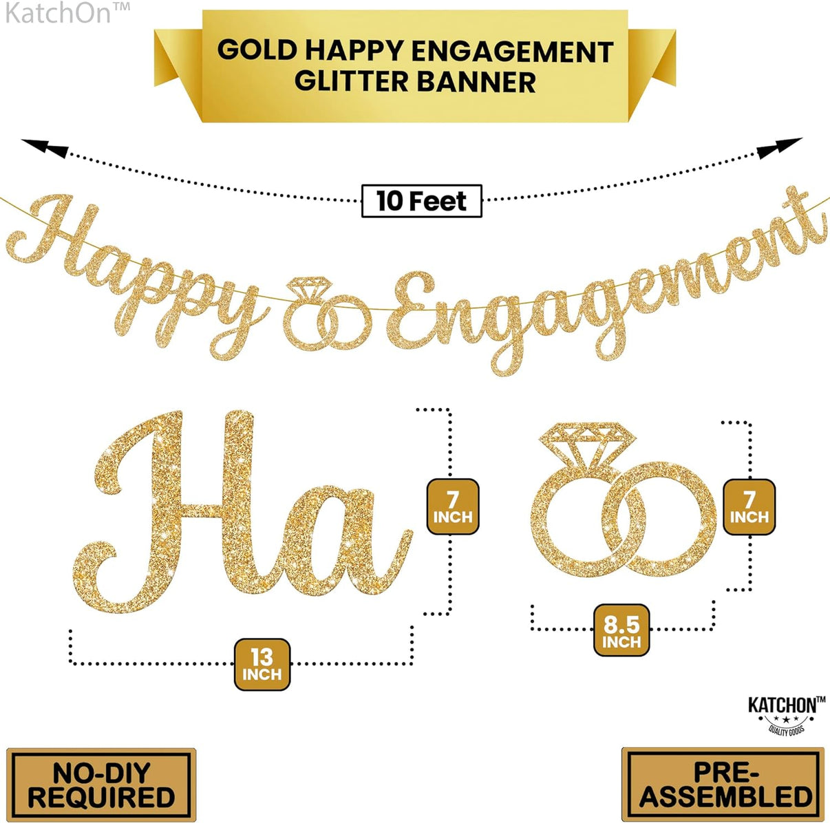 HIGH QUALITY MATERIAL | MADE TO LAST LONGTIME : The glitter gold engagement party decorations banner that spell the word “ HAPPY ENGAGEMENT ” + " CUTE GOLD DIAMOND RING " is 10 feet. The bachelorette banner gold are made from high grade thick quality cardstock material. You can also mix and match bride to be banner with other team bride banners decorations to customized your dream engagement party and make your party a hit!