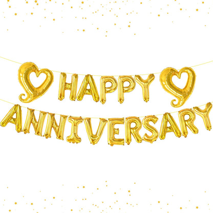 SHINY GOLD HAPPY ANNIVERSARY LETTER BALLOONS : Do you want an elegant Gold anniversary decorations for celebrating your anniversary? Happy anniversary balloons gold kit will complete your anniversary party supplies. Gold anniversary balloon banner with hook heart balloon that fulfill your dream party set-up. You’ll surely love the stunning impact of elegant anniversary balloons pack! Create an elegant anniversary with happy anniversary decorations gold and happy anniversary banner gold.