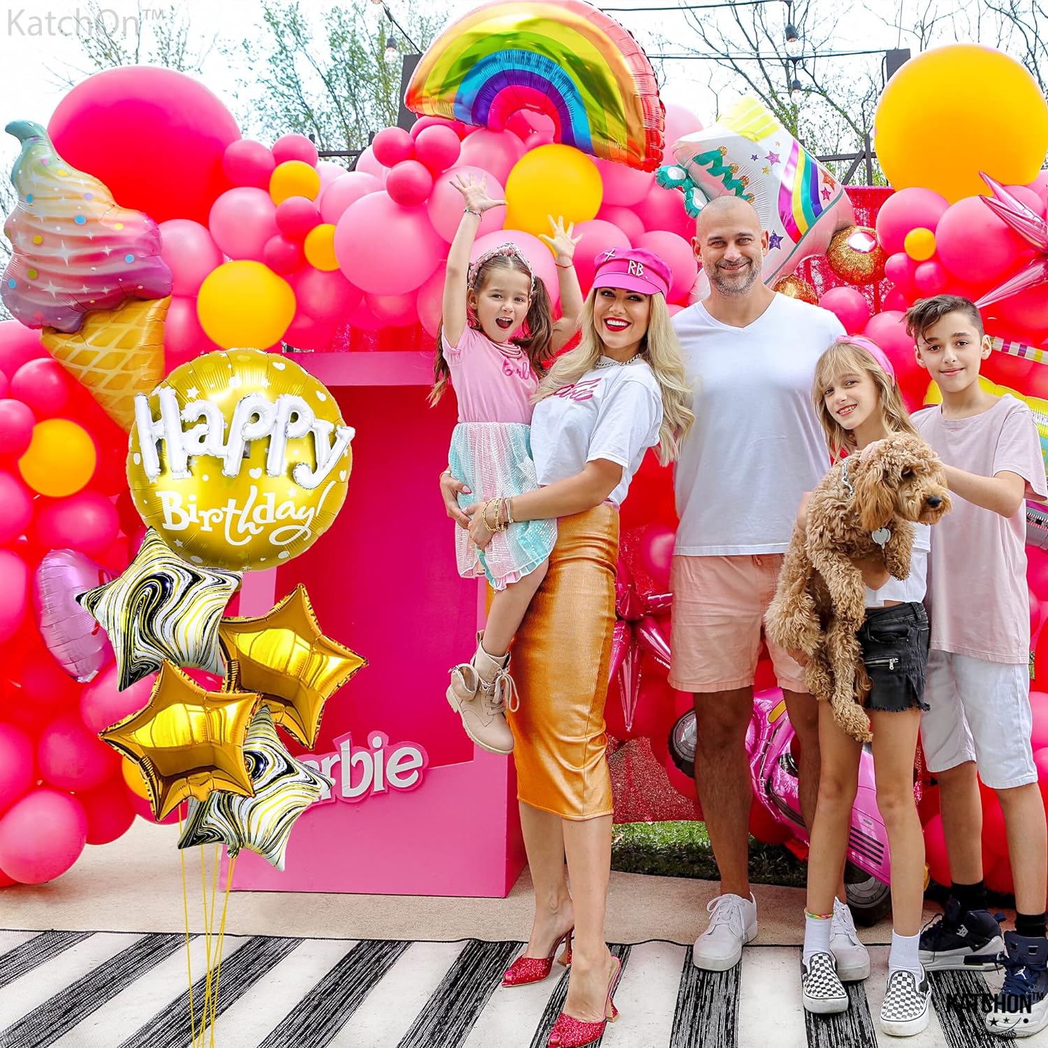 KatchOn, Gold Happy Birthday Balloon Set - 23 Inch, Big, Pack of 5 | Happy Birthday Mylar Balloons, Golden Birthday Balloons | Gold Star Balloons, Gold Foil Balloons | Black And Gold Party Decorations