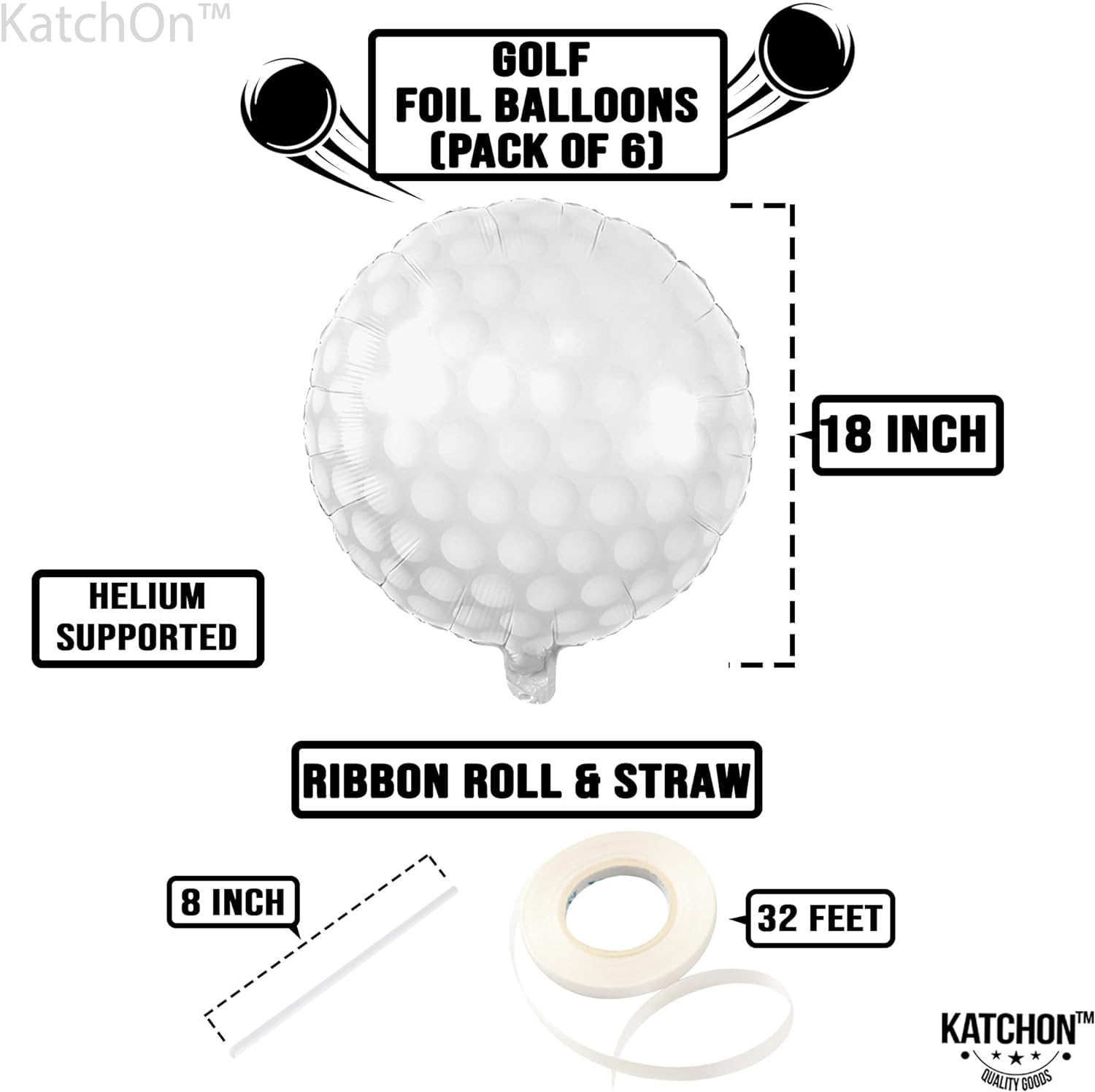 KatchOn, Golf Balloons for Birthday Party - 18 Inch | Golf Ball Balloons for Hole In One Birthday Decorations | Foil Golf Balloon for Golf Birthday Party Decorations | Masters Golf Party Decorations