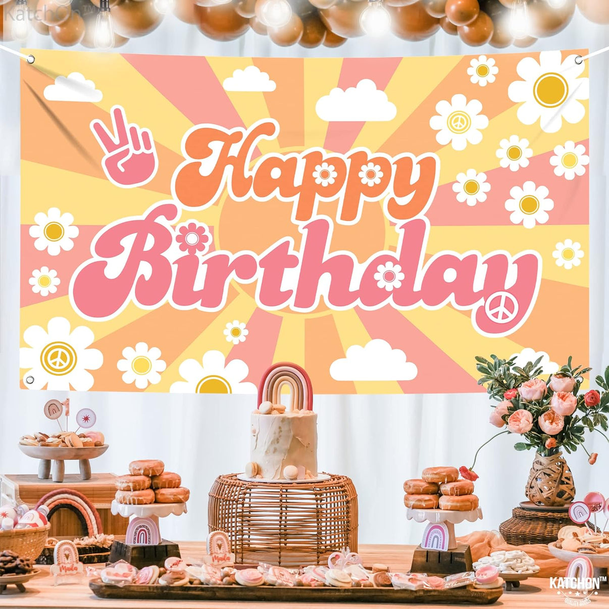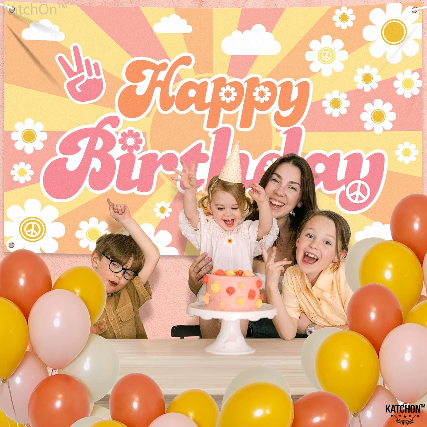 XTRALARGE - 72x44 INCH | LET'S MAKE IT A GROOVY ONE : Add flair to your child's birthday party with our katchon groovy birthday banner. Colorful, 72x44 Inch size, groovy banner is the best groovy backdrop for your hippie or retro themed party. happy birthday groovy banner features bold, groovy one banner letters that spell out "Happy birthday" in a fun. You can use it for any hippie birthday banner decorations like two Groovy party decorations, hippie birthday decorations, boho party decorations