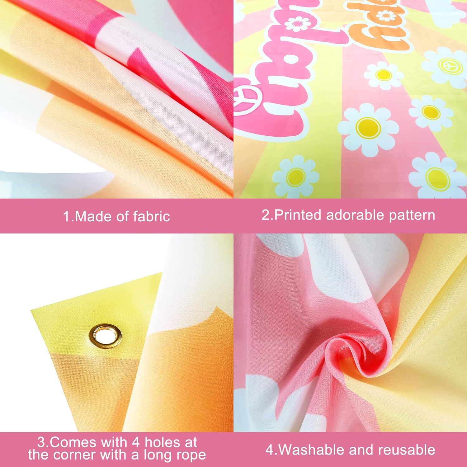 LET THE CELEBRATION BEGIN! WISHING YOU A GROOVY BIRTHDAY : Are you planning a hippie-themed birthday party for your little one? Look no further than our groovy backdrop. Luxurious retro birthday banner is the great addition to hippie party decorations and will add a touch of nostalgia. with groovy birthday backdrop Add some cute groovy one party decorations and plastic groovy party decorations to complete and make your party a hit! and make your birthday party pop with groovy party favors.