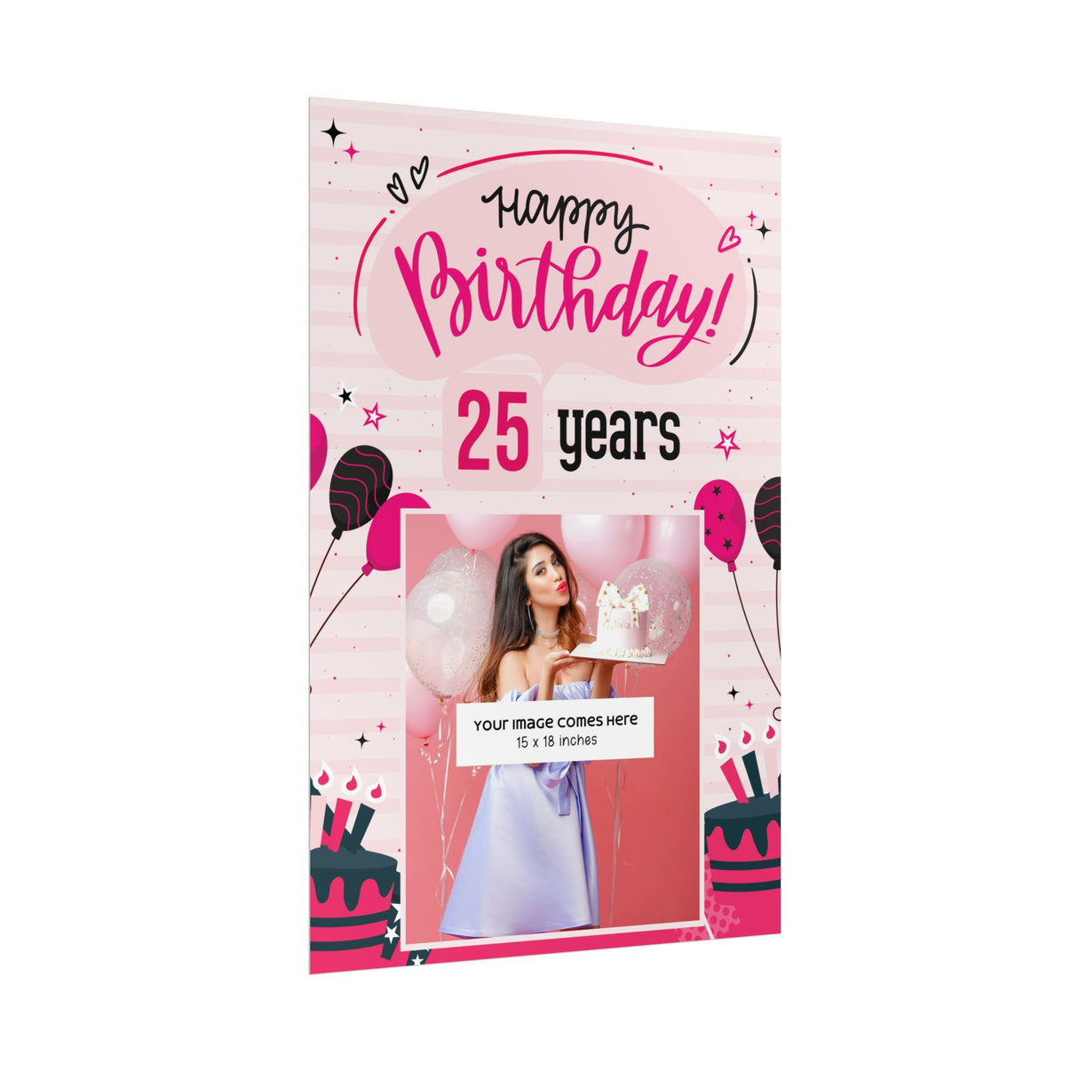 Celebrate birthdays with a rolled poster that feels like a handwritten party invitation. Soft pink stripes, playful balloons, and stylized cakes wrap around a cheerful “Happy Birthday!” headline with a fill-in box for ages—simple, bright, and nostalgic. Hang it in a party space or tuck it into a card; this print brings a light, festive energy and leaves room for handwriting or photo placement. The textured fine art option lends a painterly, keepsake quality, while matte and semi-gloss choices keep colors punchy with finishes that suit different display styles. Available in horizontal and vertical layouts and multiple sizes to fit mantels, entryways, or framed wall displays.