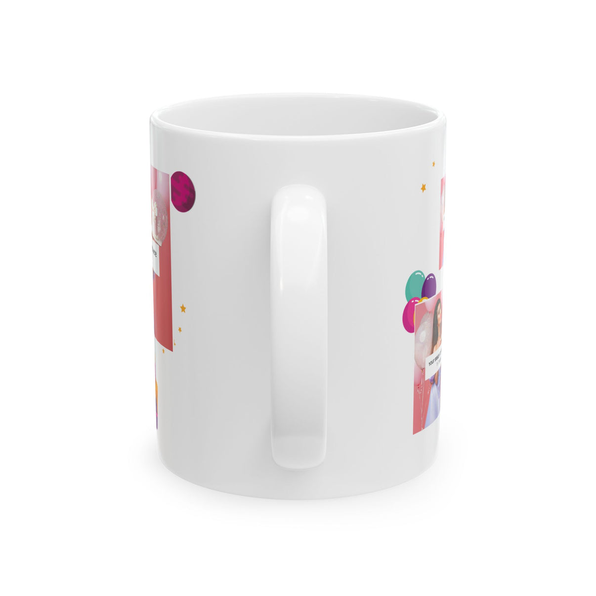 This glossy ceramic mug brings a burst of birthday joy to every morning cup. Bright, high-definition prints wrap around the white ceramic surface: playful lettering spells out “Happy Birthday,” colorful balloons and confetti dance across the background, and a bold “25 Years” mark makes it especially meaningful for a quarter‑century celebration. The comfortable C-handle and shiny finish make it feel cheerful in the hand while durable, lead- and BPA-free construction keeps daily sipping worry-free. Choose 11oz for a classic coffee or 15oz when you want an extra pour of cocoa, tea, or celebratory hot chocolate.