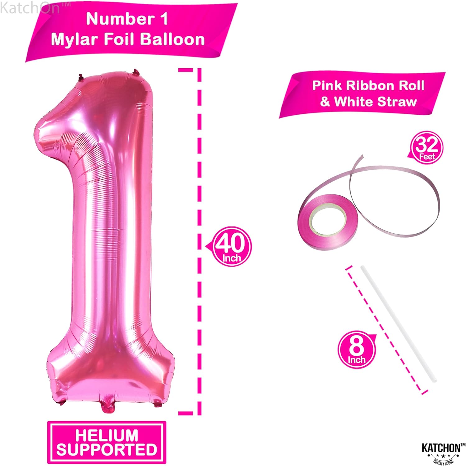 KatchOn, Hot Pink 1 Balloon for First Birthday - 40 Inch | Hot Pink One Balloon for First Birthday | Number 1 Balloons for 1st Birthday Decorations, Hot Pink Party Decorations | 1st Birthday Balloon