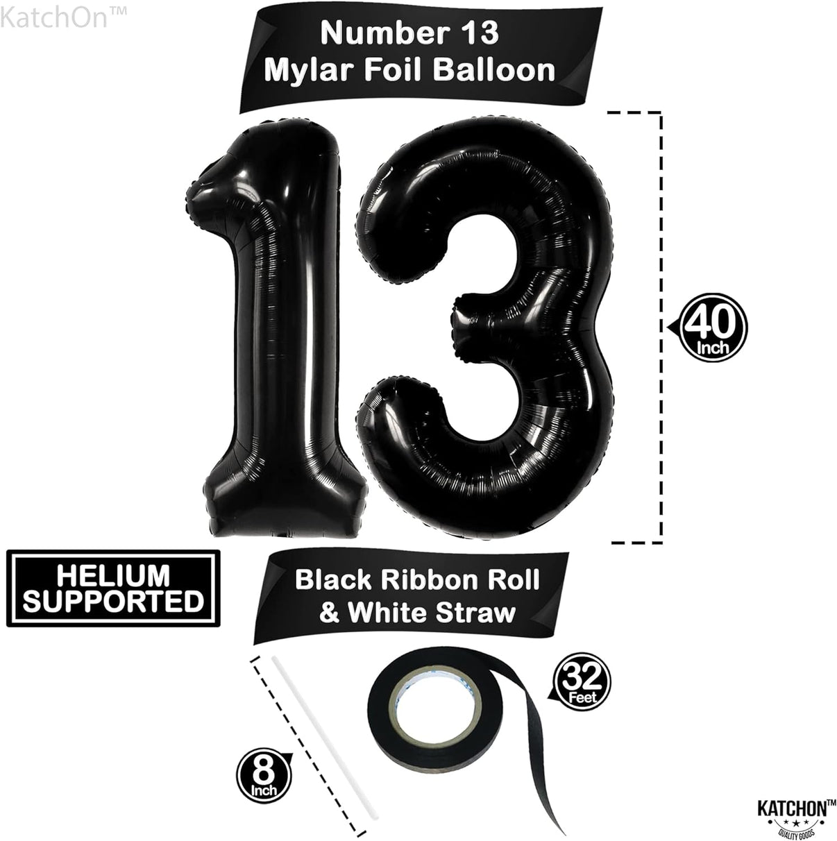 KatchOn, Huge Black 13 Balloon Numbers - 40 Inch | Black 13 Birthday Balloon for 13th Birthday Decorations for Boys | 13th Birthday Decorations for Girls | Official Teenager Birthday Decorations Boy