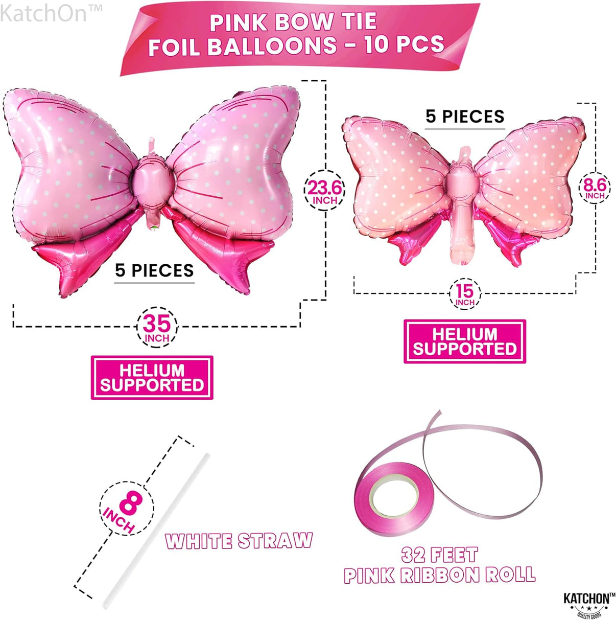 EASY TO USE | ADORABLE ADDITION TO GARLAND : Our cute 10 piece bow balloon are featuring in jumbo bow tie shape and vibrant pink color, favorable eye-catching look. It's a Girl Balloons for bow gender reveal decorations. Perfect pink hair bow balloons for princess theme party and you can use this pink balloon bows for big bow decoration, pink bow decoration, This hot pink bow balloon perfect combination for hot pink birthday decorations. no worries on buying bows balloons, create a dream party.
