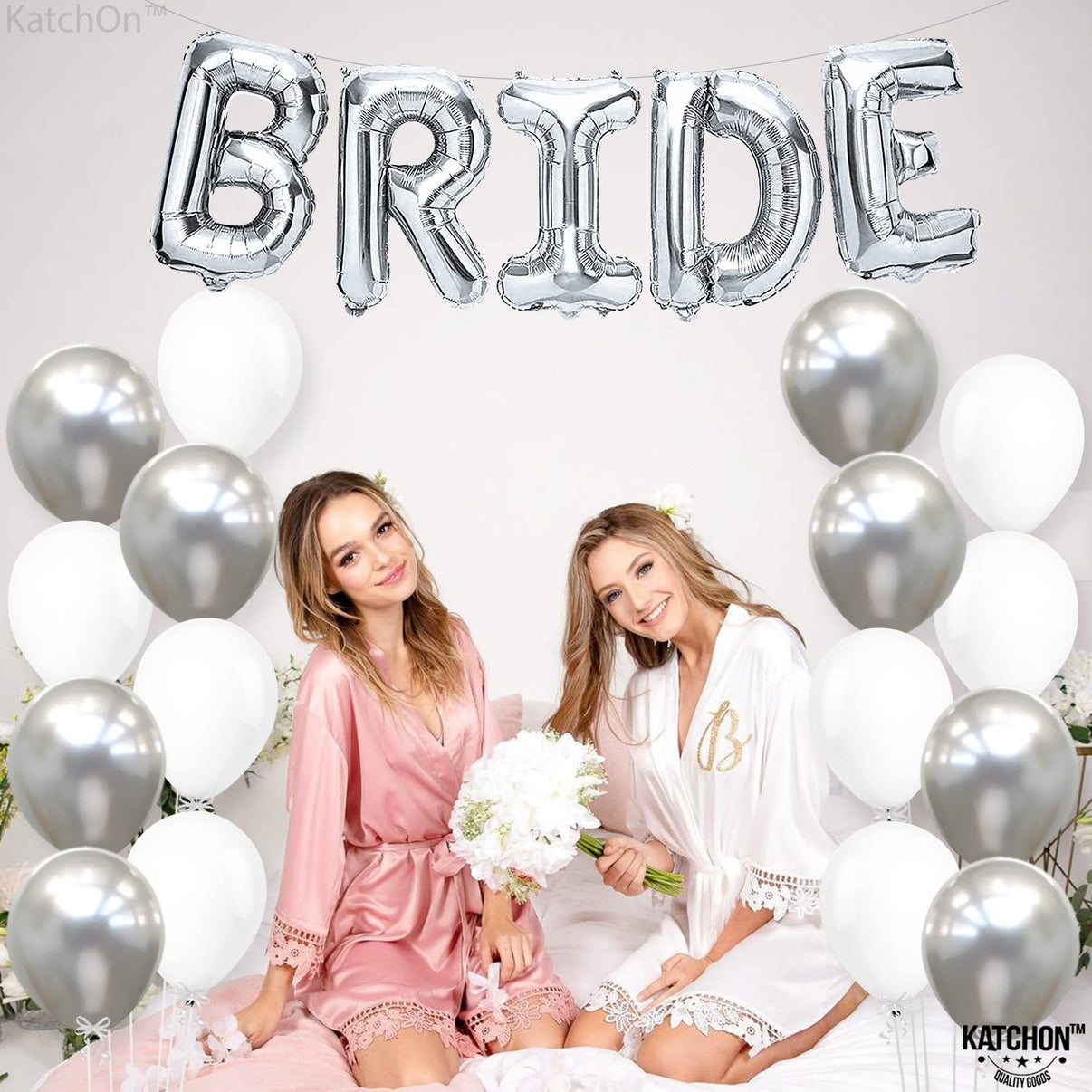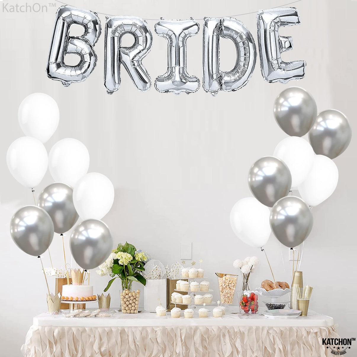 Bride balloons white, Bride balloon silver Bachelorette party entrance decorations.