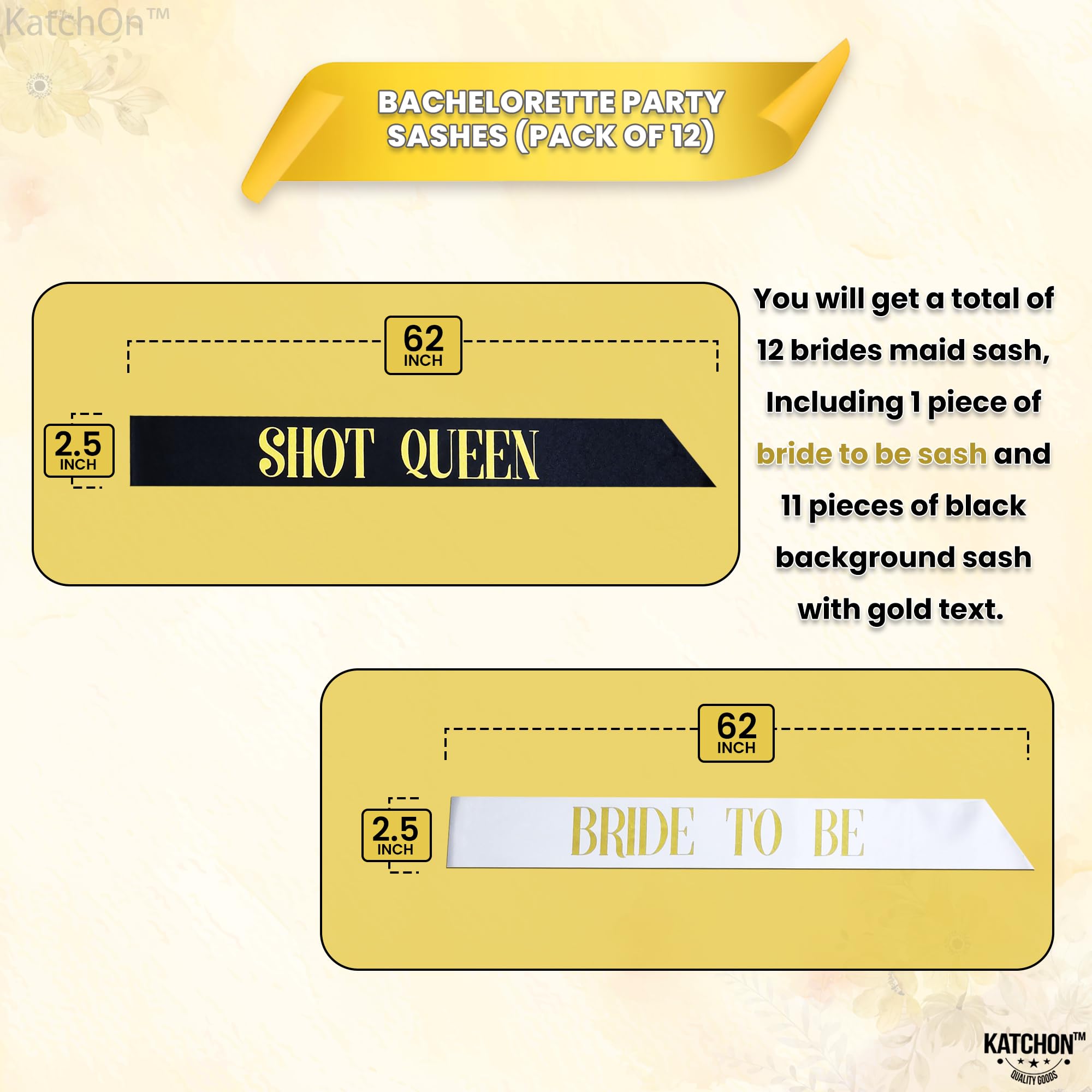 - Black Sash with Gold Unique Bridal print - Pack of 11