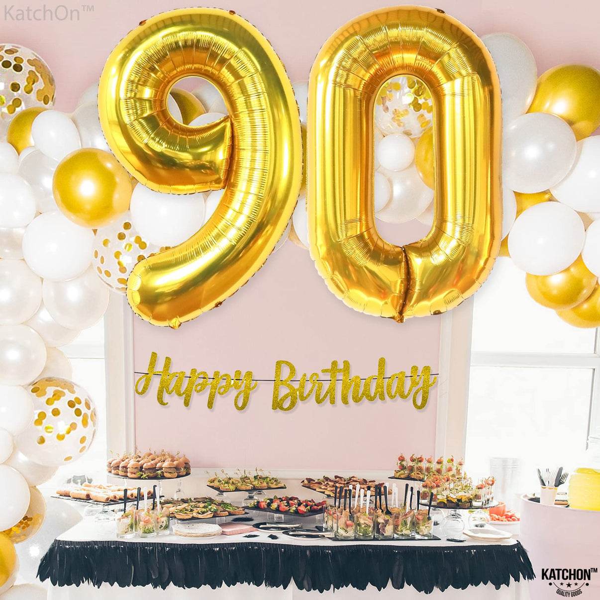 KatchOn, Big Gold 90 Balloon Number - 40 Inch | Gold 90th Birthday Balloons, 90th Birthday Decorations for Men, Women | Number 90 Birthday Balloon | 90 balloon number Birthday Party Decor