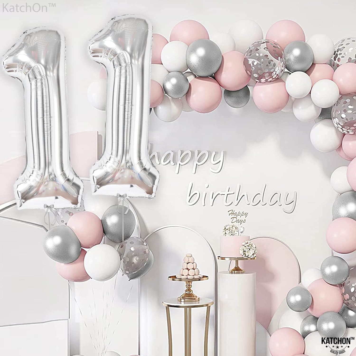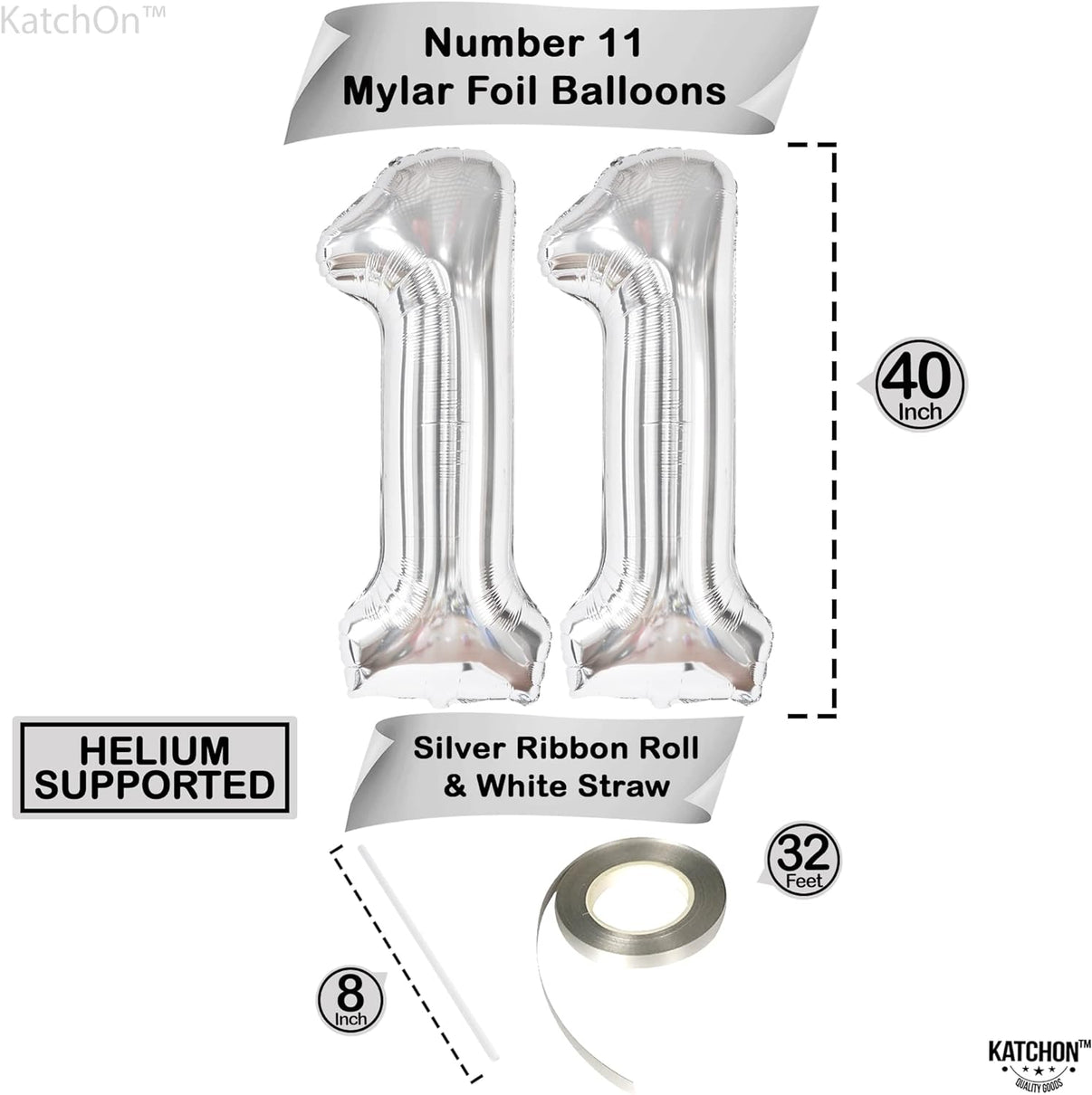 KatchOn Big Silver Number 11 Balloon - 40 Inch | Silver 11 Birthday Balloon for 11th Birthday Decorations for Boys | Number 11 Balloons for Birthdays, Silver 11 Balloon for Girls | 11 Party Balloons