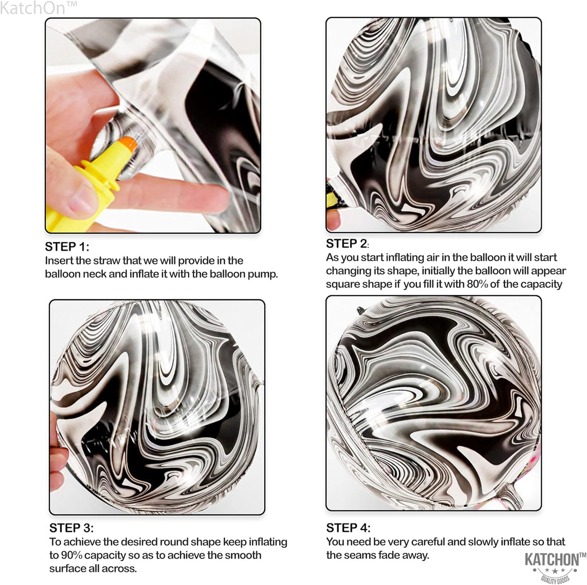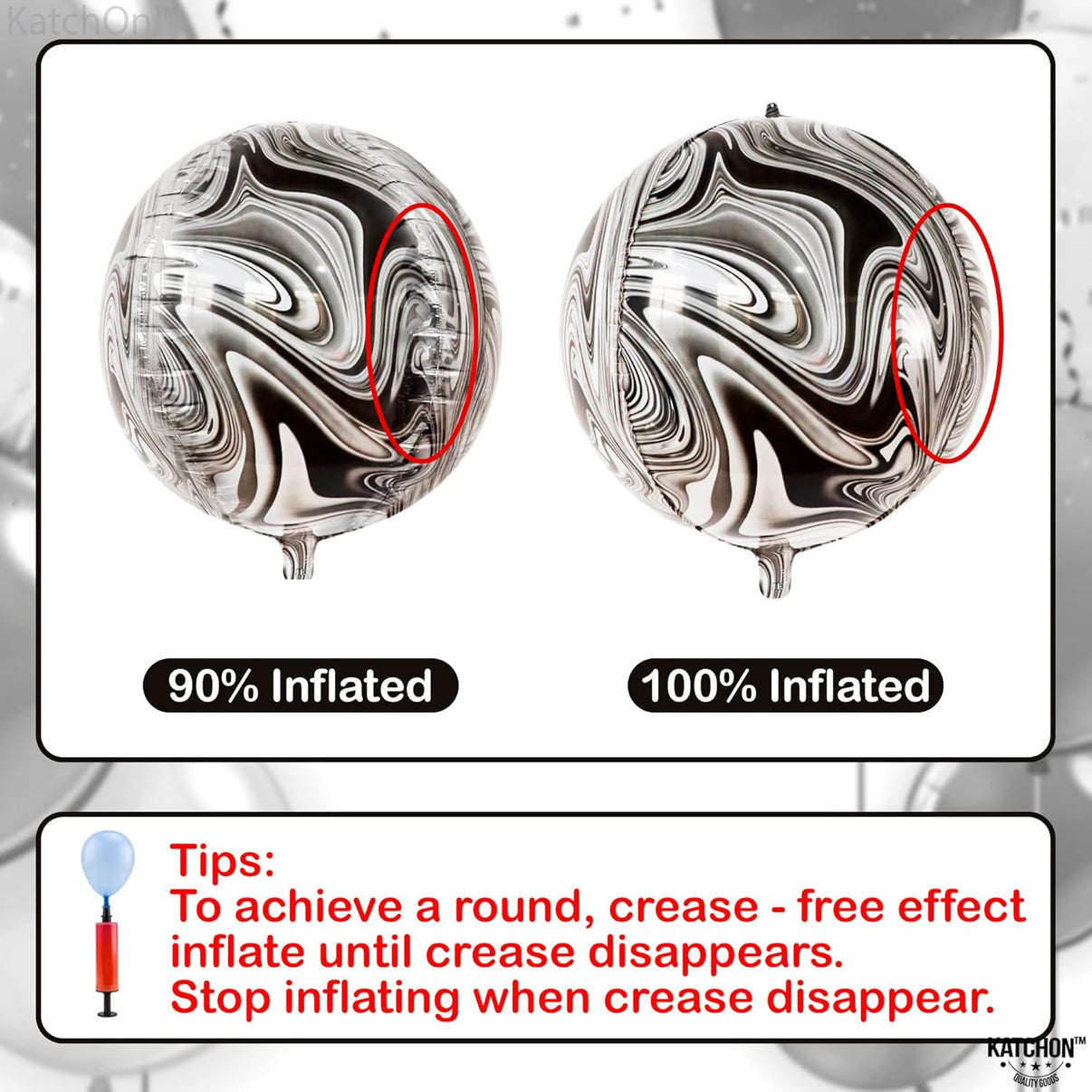 KatchOn, Black and White Marble Balloons - Large 22 Inch, Pack of 6 | 4D Round Black Marble Balloons for Black and White Party Decorations, Birthday, Bachelorette, Halloween Decorations