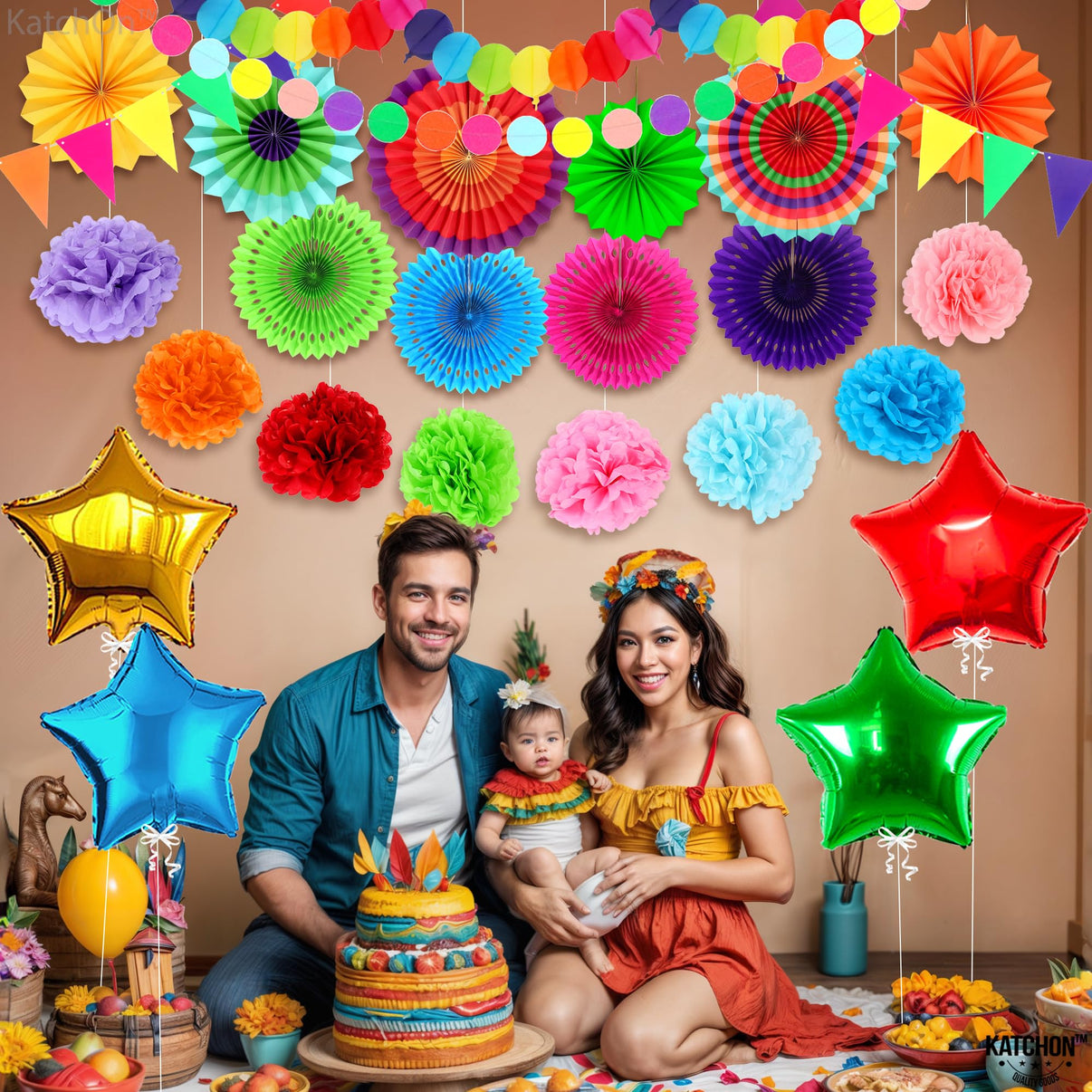 These hanging paper decorations in Mexican fiesta party decorations are a perfect in your fiesta party wall decorations ! These colorful party fans for fiesta decorations party