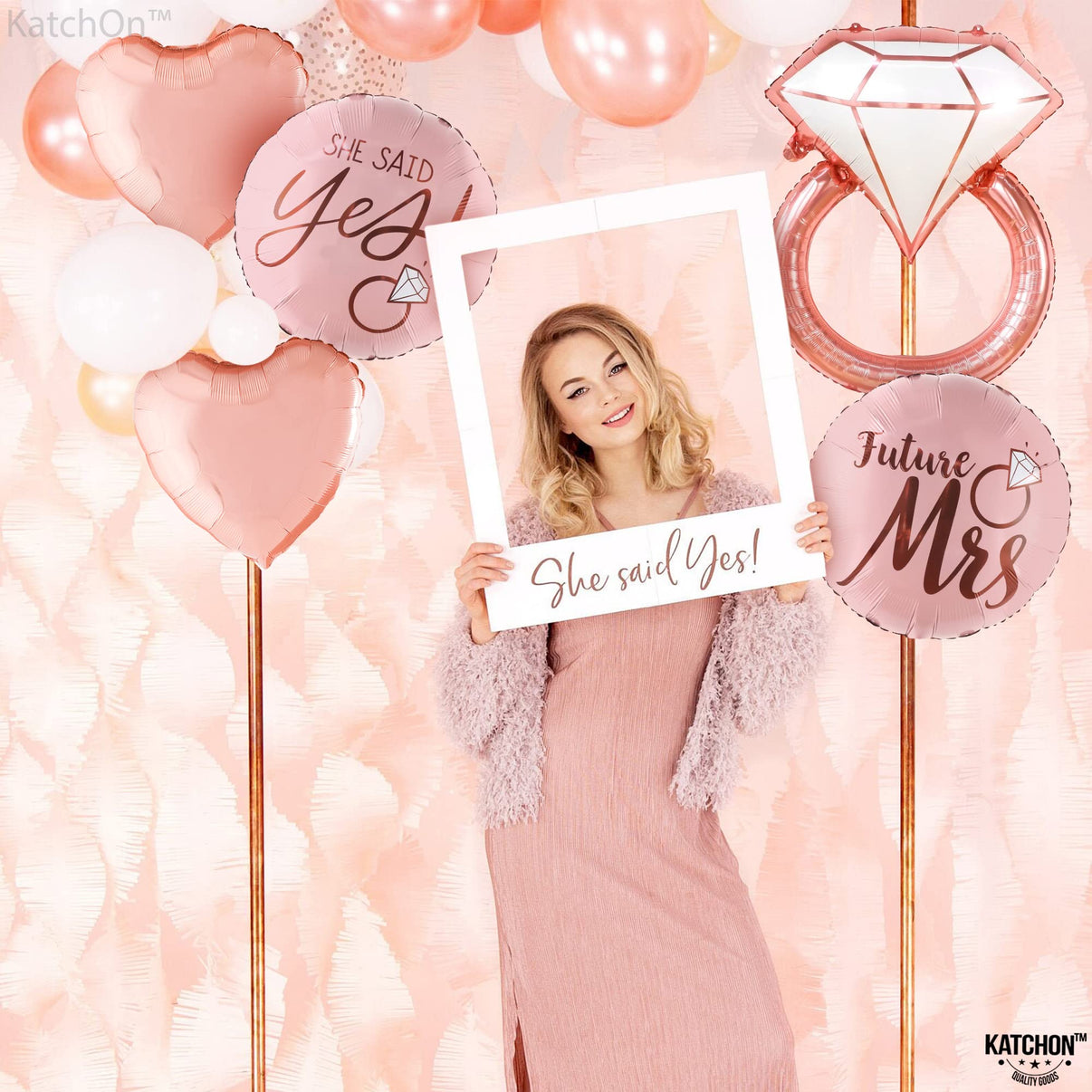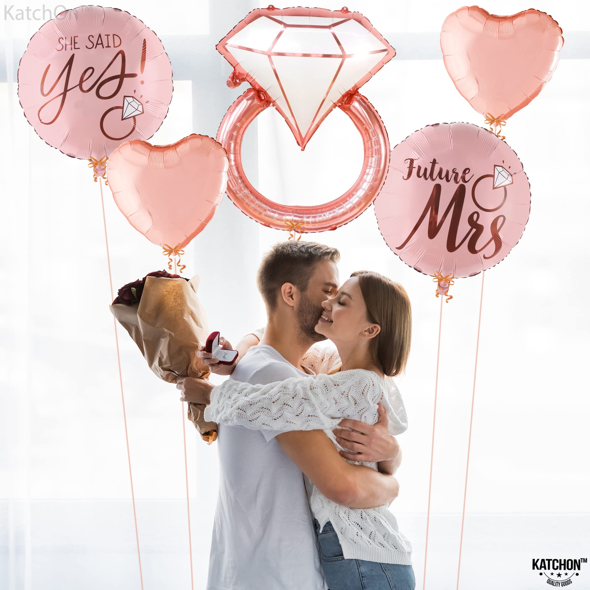 KatchOn, Diamond Ring Foil Balloon Set - Pack of 5 | Future Mrs Balloons | She Said Yes Decorations | Bridal Shower Balloons for Bachelorette Party Decorations, Rose Gold Bridal Shower Decorations