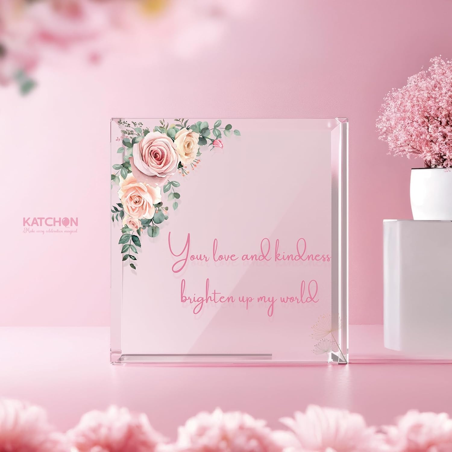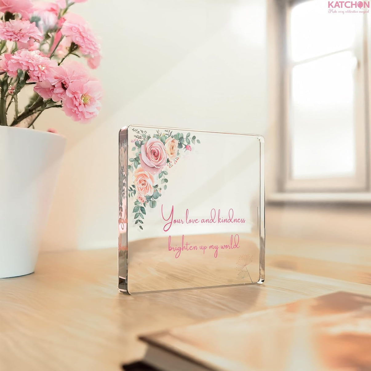 <p>Celebrate love, gratitude, and special moments with this elegant <strong>KatchOn Floral Acrylic Plaque Glass Keepsake</strong>. Featuring the heartfelt message “Your Love and Kindness Brighten Up My World,” this premium acrylic gift is a meaningful way to show appreciation to someone you care about.</p>