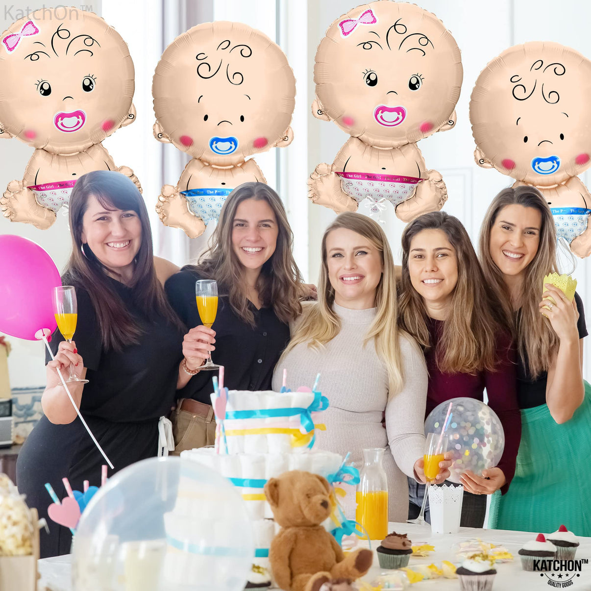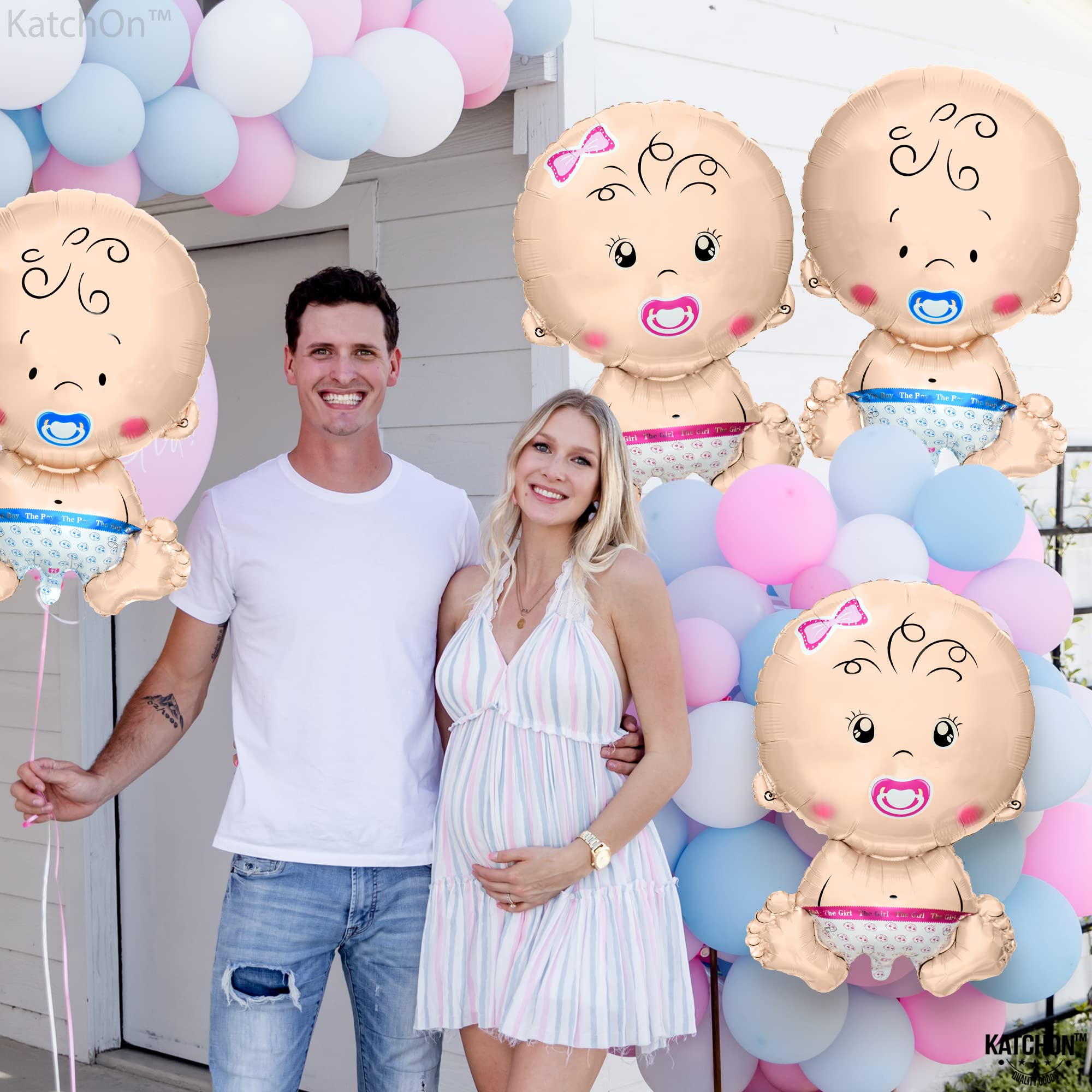 KatchOn, Gender Reveal Balloon - 29 Inch Pack of 4 | Baby Girl Baby Boy Balloons for Twin Gender Reveal Decorations | Boy or Girl Balloon, balloons for baby Shower Decorations | Twin Balloons