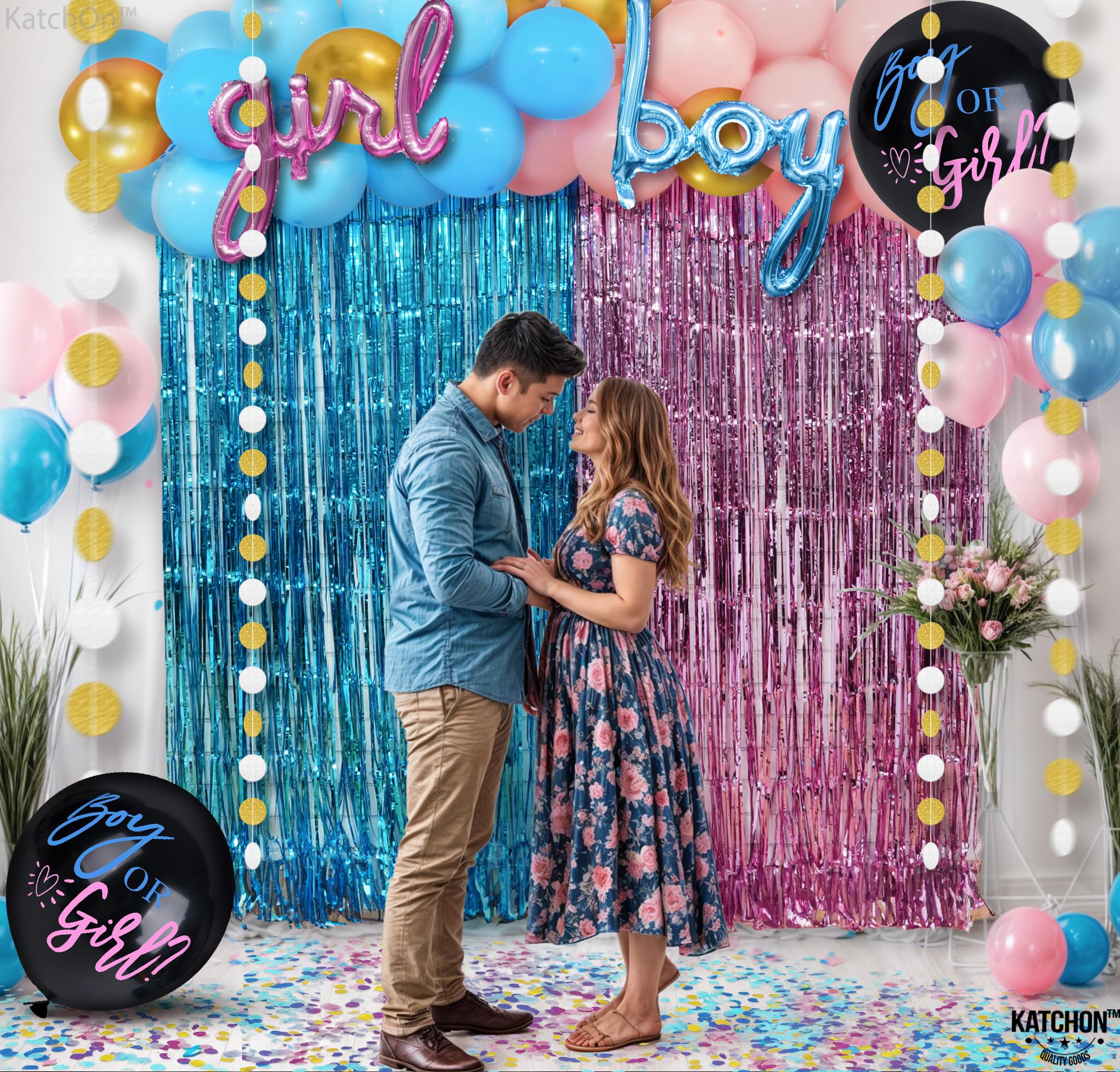 Pink and blue balloons for gender reveal, Baby gender reveal decorations, baby reveal decorations, pink and blue confetti, gender reveal confetti
